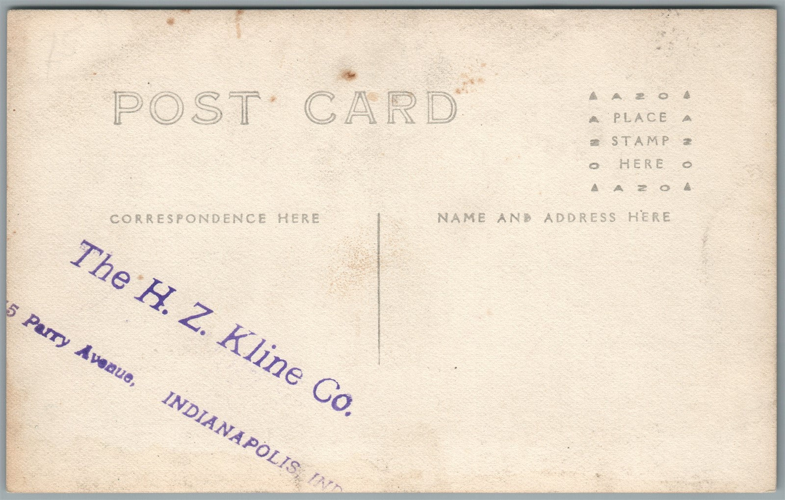 INDIANAPOLIS IN THE H.Z. KLINE CO. ANTIQUE REAL PHOTO POSTCARD RPPC