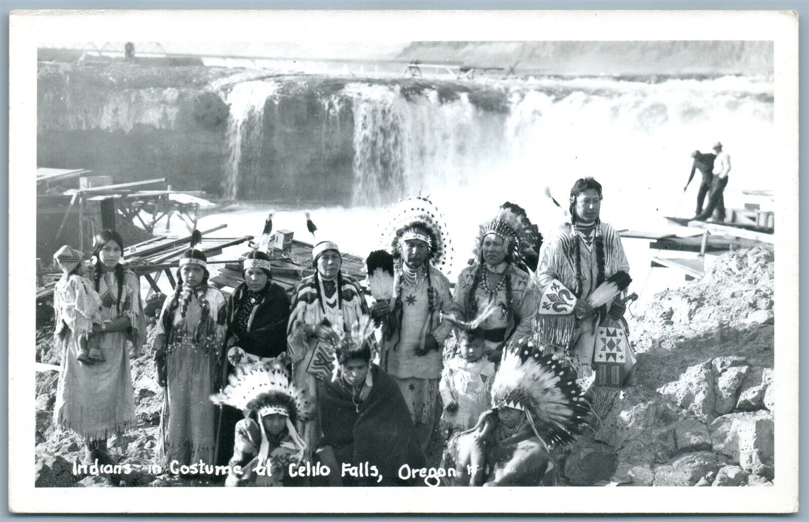 INDIANS in COSTUME at CELILO FALLS OR ANTIQUE REAL PHOTO POSTCARD RPPC