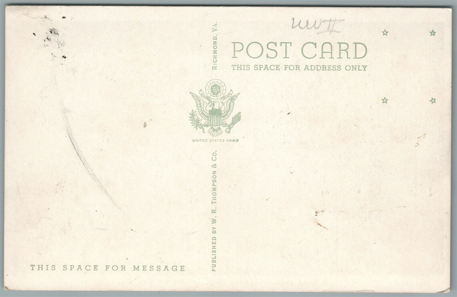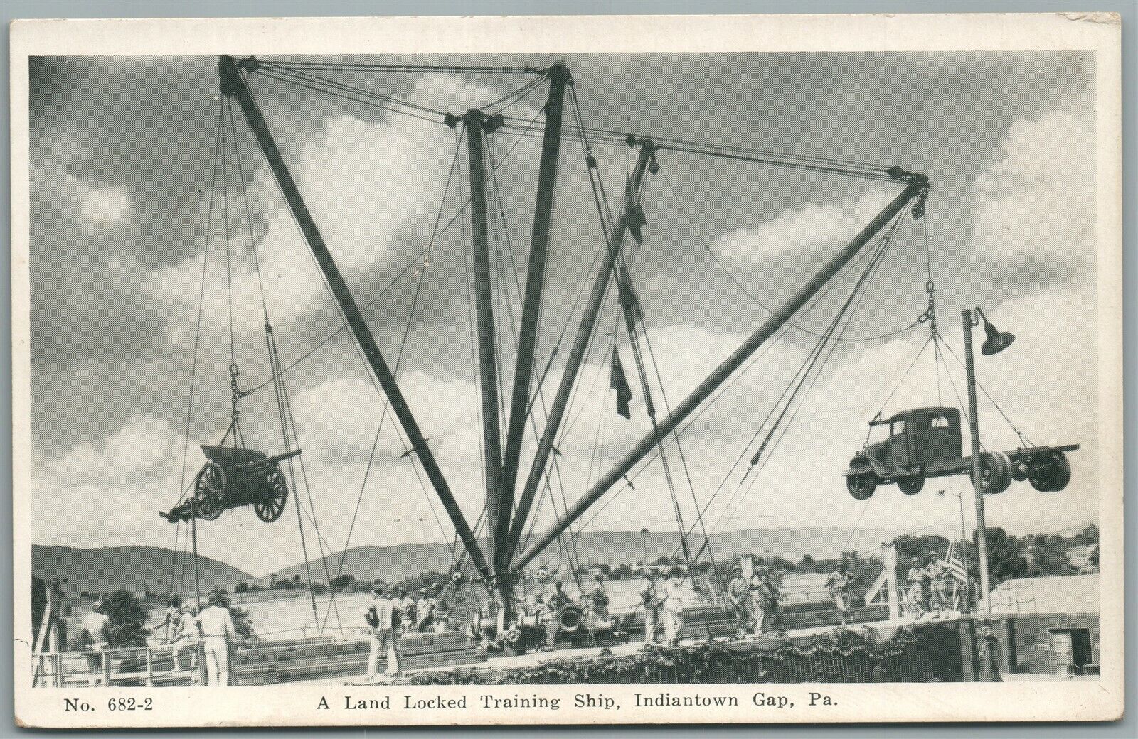 INDIANTOWN GAP PA LAND LOCKED SHIP TRUCK & CANNON HAULING VINTAGE POSTCARD
