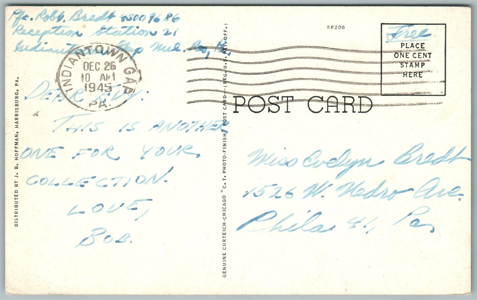 INDIANTOWN GAP PA MILITARY RESERVATION RED CROSS BUILDING 1945 VINTAGE POSTCARD