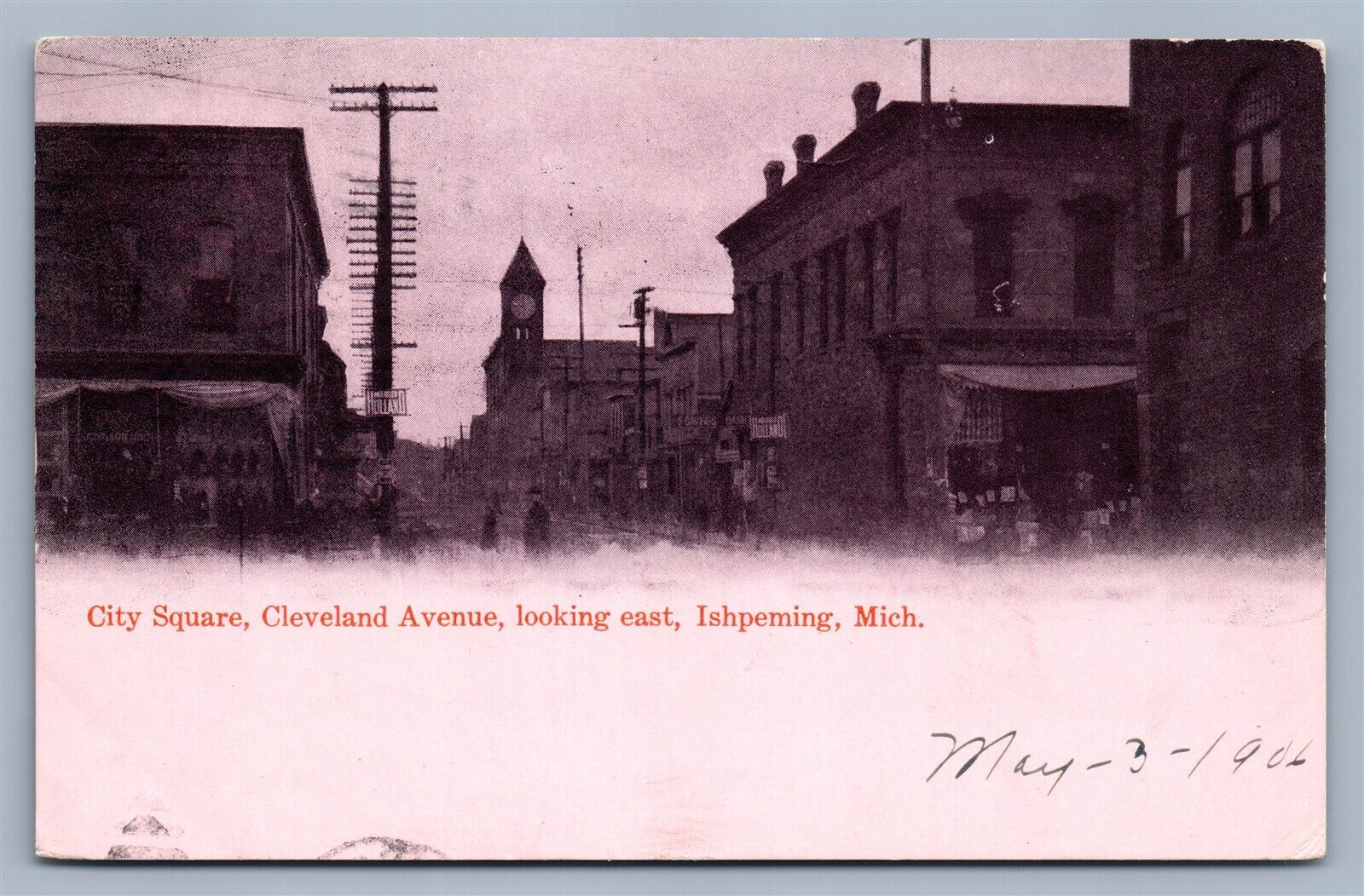 ISHPEMING MI CITY SQUARE CLEVELAND AVENUE 1906 ANTIQUE POSTCARD