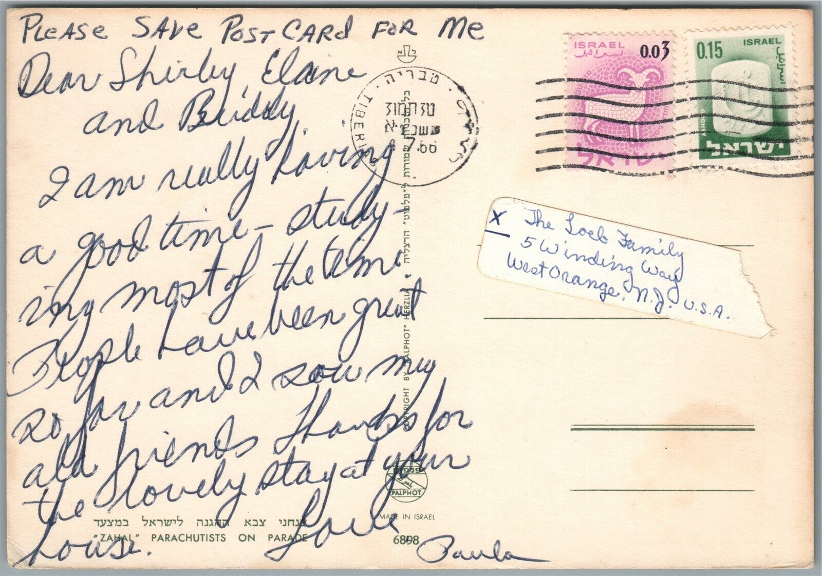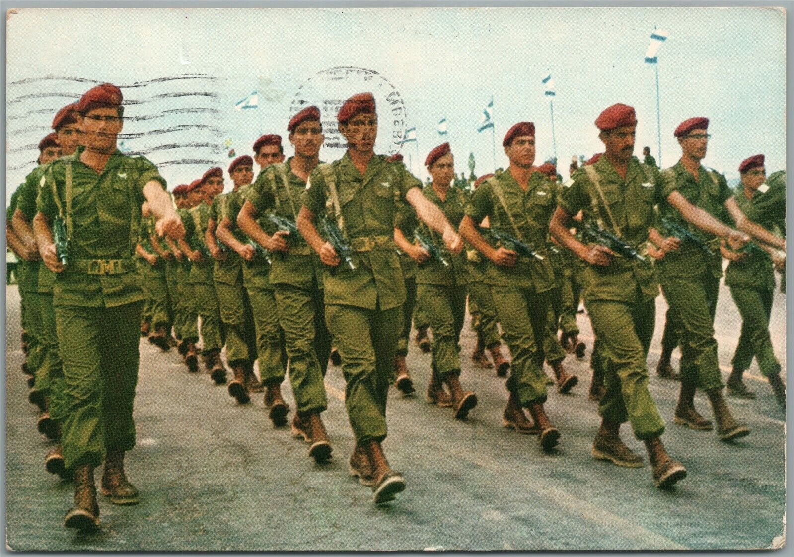 ISRAEL ARMY ZAHAL PARACHUTISTS on PARADE VINTAGE POSTCARD