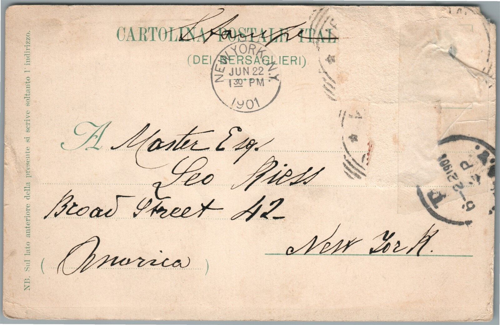 ITALIAN ARMY 1901 ANTIQUE POSTCARD