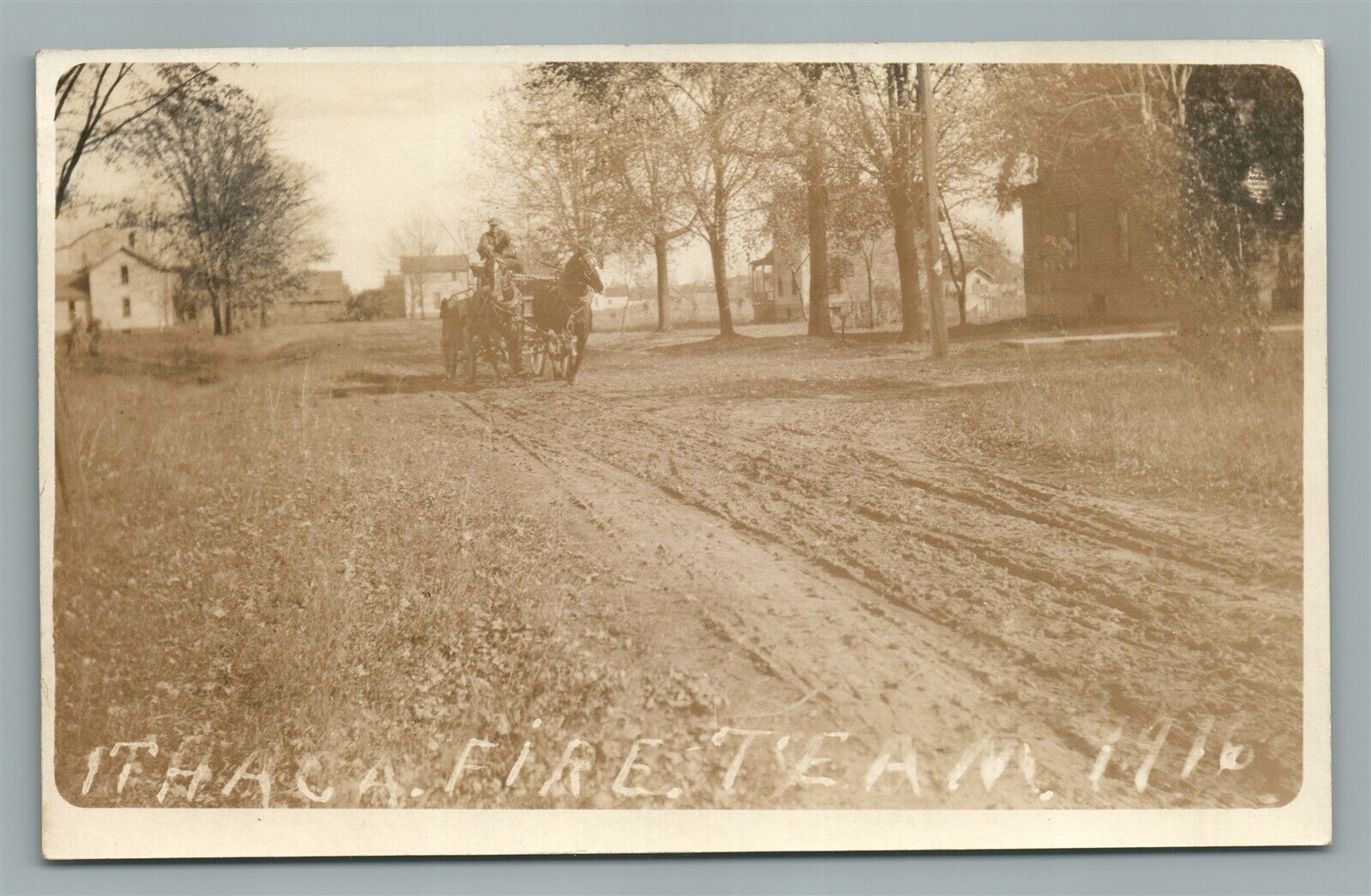 ITHACA NY FIRE TEAM 1916 ANTIQUE REAL PHOTO POSTCARD RPPC