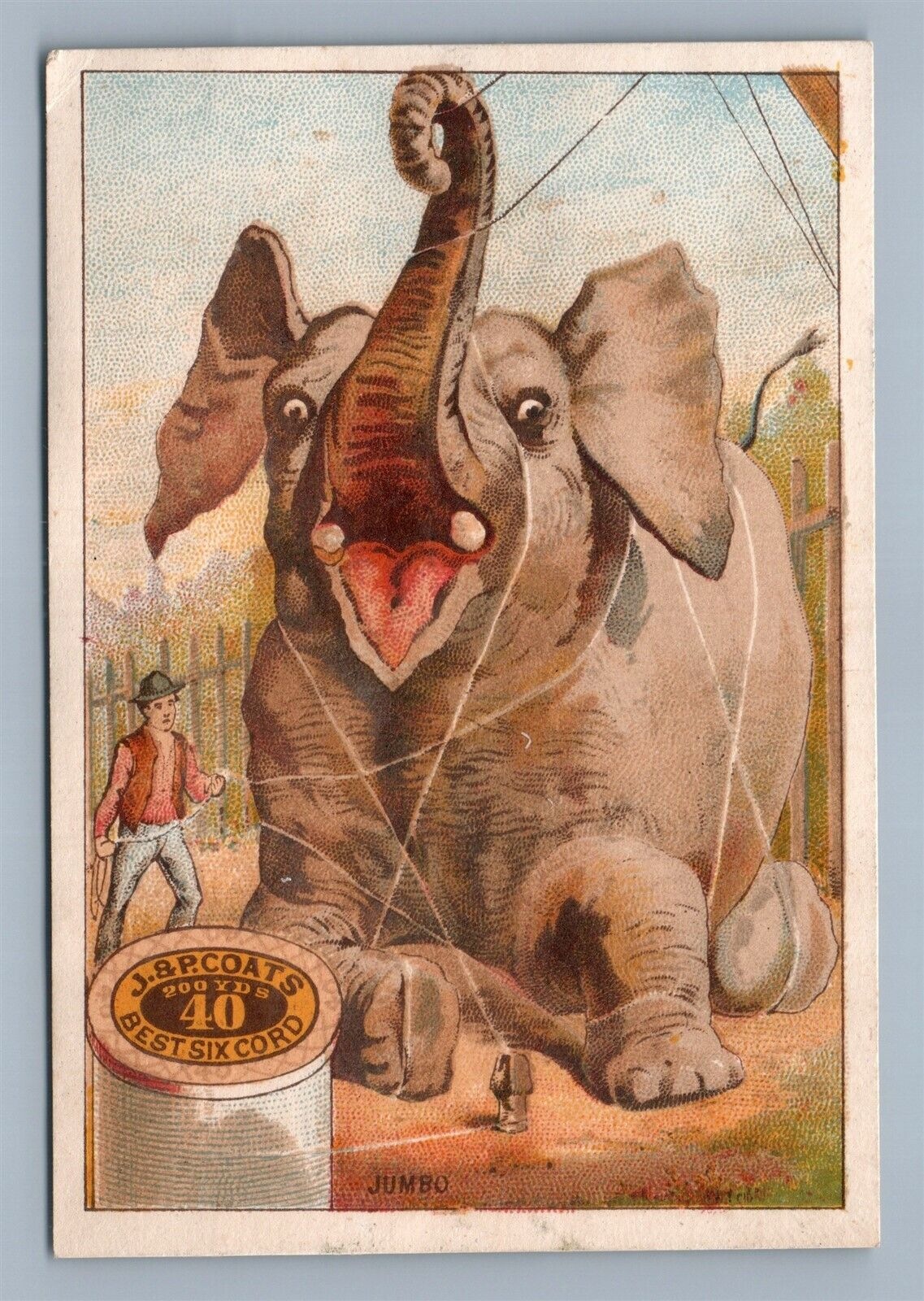 J & P COAT'S SPOOL COTTON VICTORIAN TRADE CARD w/ ELEPHANT