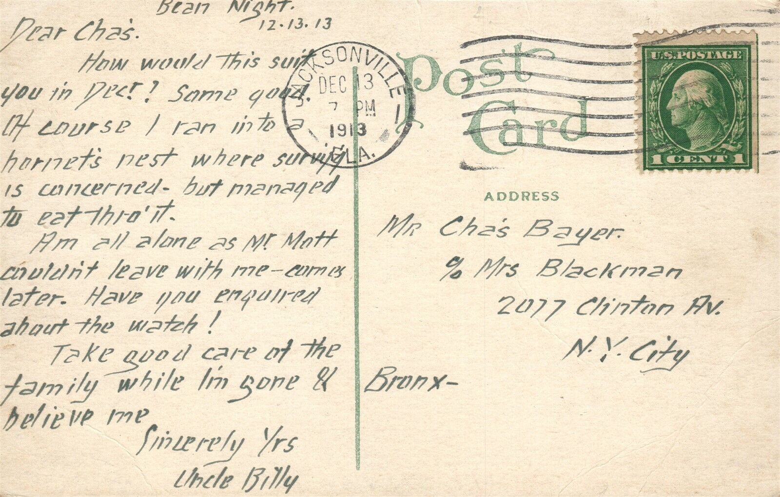 JACKSONVILLE FL FIRST STREET SPRINGFIELD 1913 ANTIQUE POSTCARD