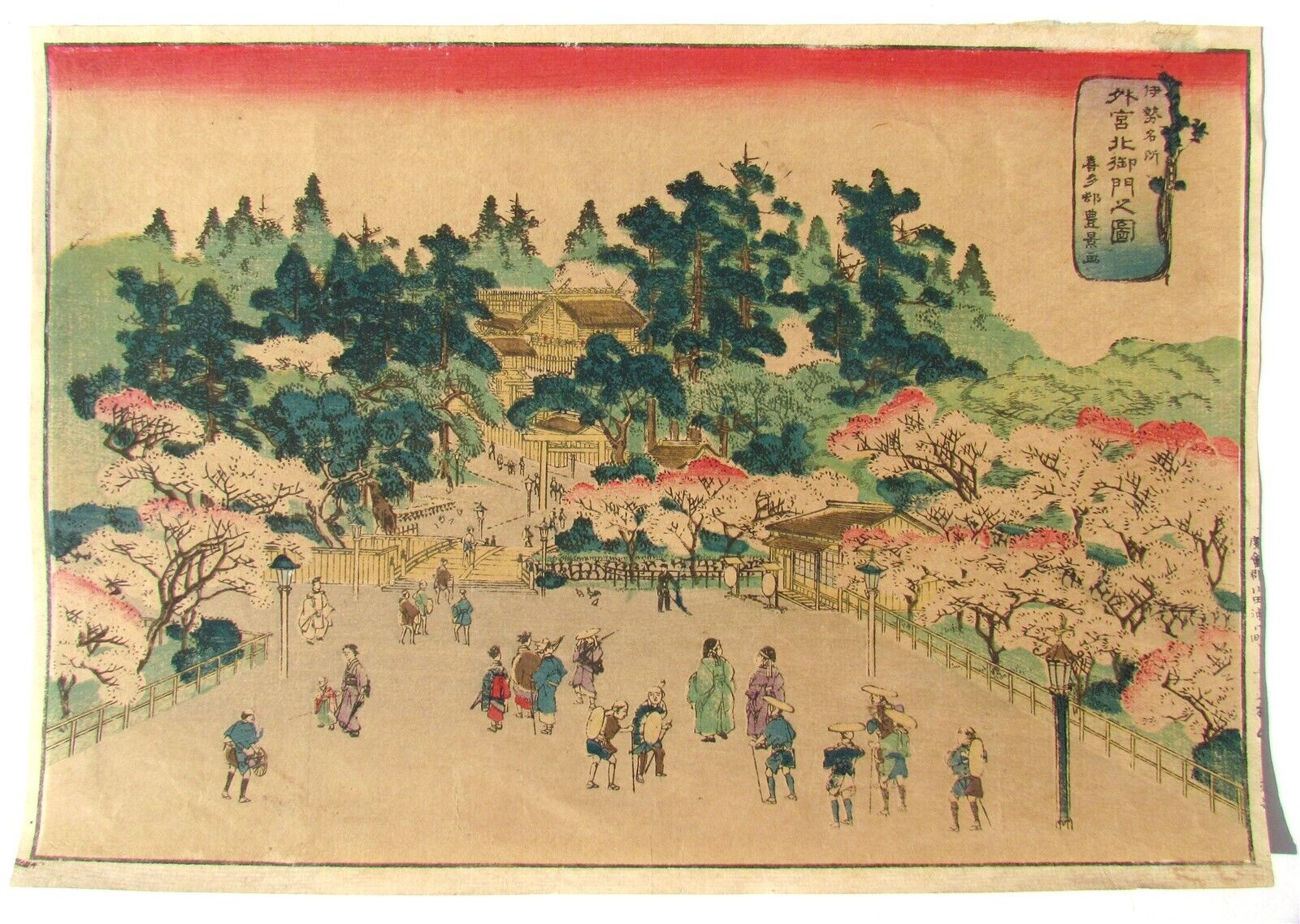 JAPANESE WOODBLOCK PRINT ANTIQUE YARD SCENE