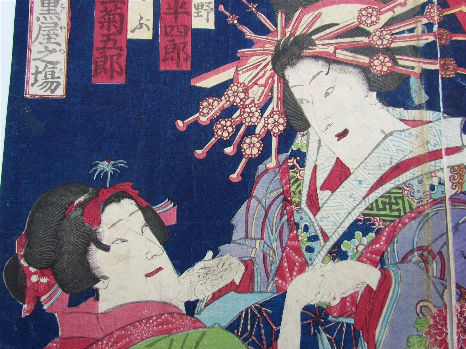 JAPANESE WOODBLOCK PRINT TRIPTYCH antique by UTAGAWA KUNISADA