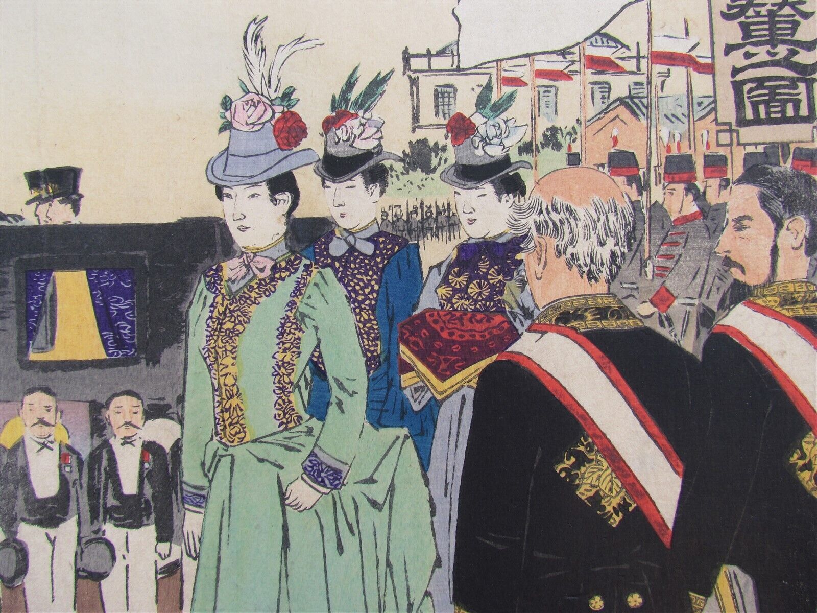 JAPANESE WOODBLOCK TRIPTYCH PRINT ANTIQUE by KOBAYASHI KIYOCHIKA 1895 MEIJI