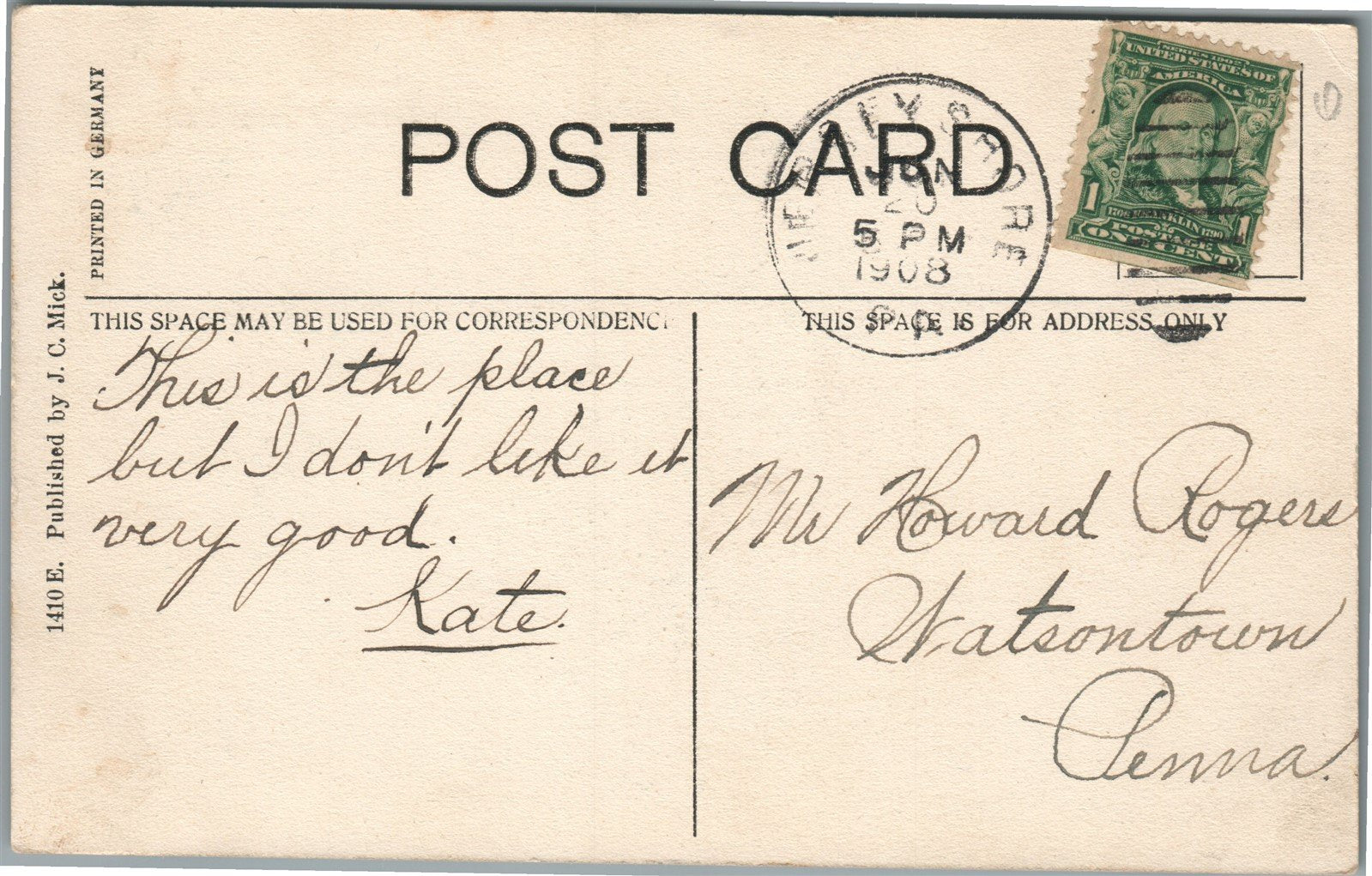 JERSEY SHORE PA GAMBLE HOUSE ANTIQUE POSTCARD