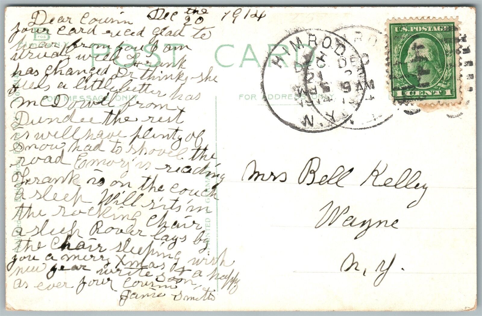 JERSEY SHORE PA HIGH SCHOOL 1914 ANTIQUE POSTCARD