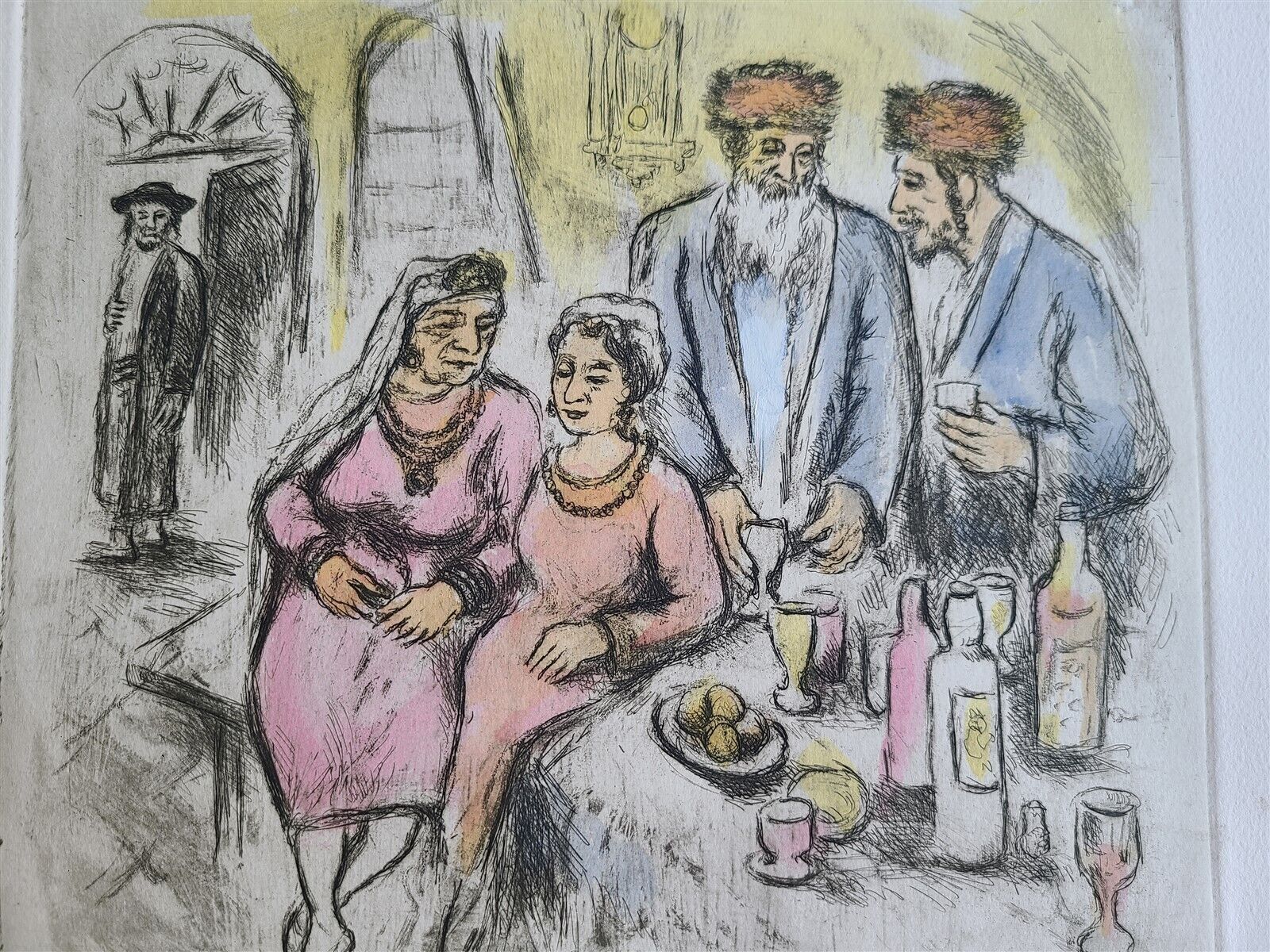 JEWISH WEDDING ORIGINAL HAND COLORED SIGNED ETCHING by IRA MOSKOWITZ Judaica