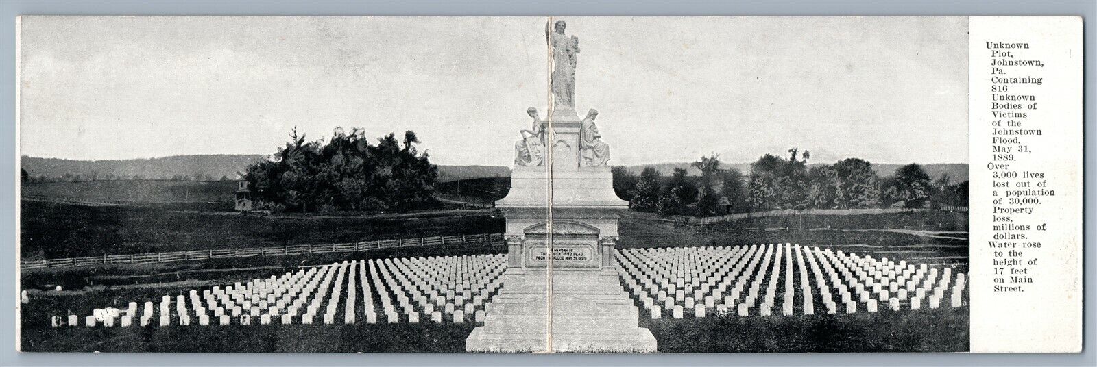 JOHNSTOWN PA FLOOD VICTIMS CEMETERY FOLDING ANTIQUE DOUBLE POSTCARD