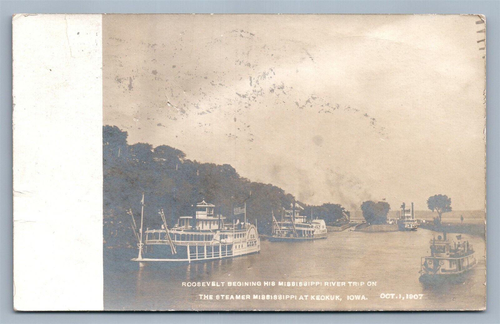 KEOKUK IA STEAMER MISSISSIPPI PRES. ROOSEVELT ANTIQUE REAL PHOTO POSTCARD RPPC