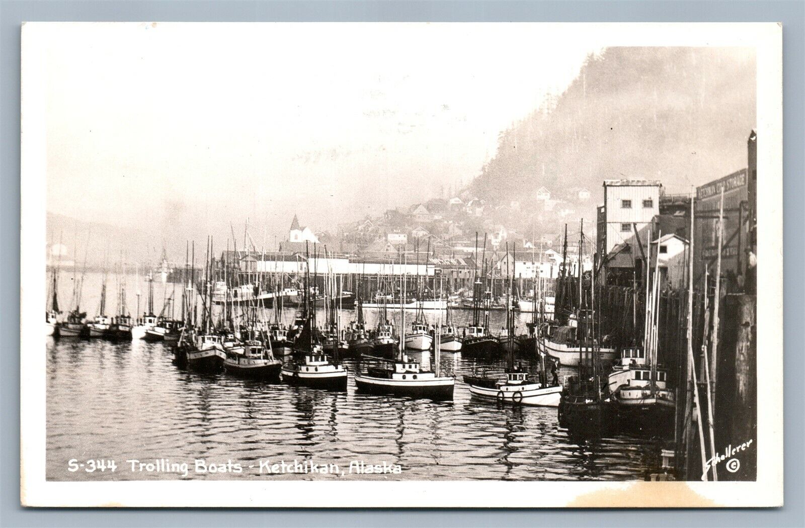 KETCHIKAN AK TROLLING BOATS VINTAGE REAL PHOTO POSTCARD RPPC