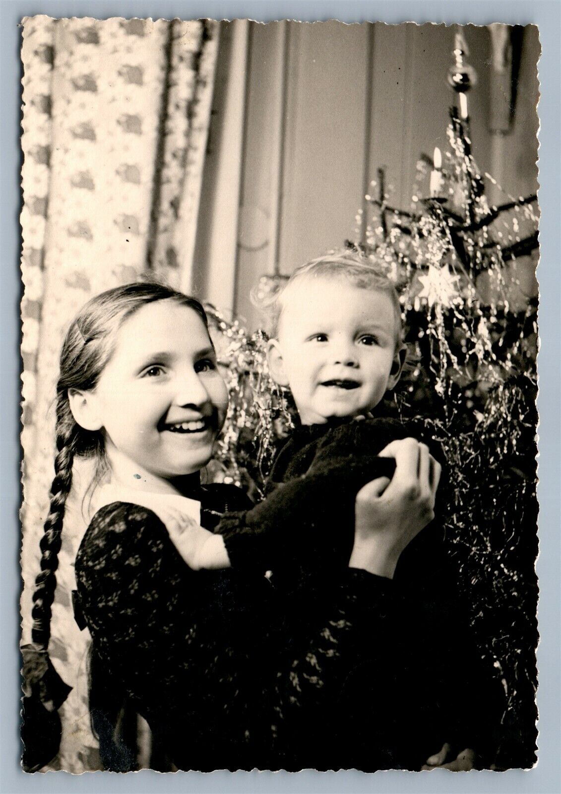 KIDS AT CHRISTMAS TREE 1951 VINTAGE POSTCARD