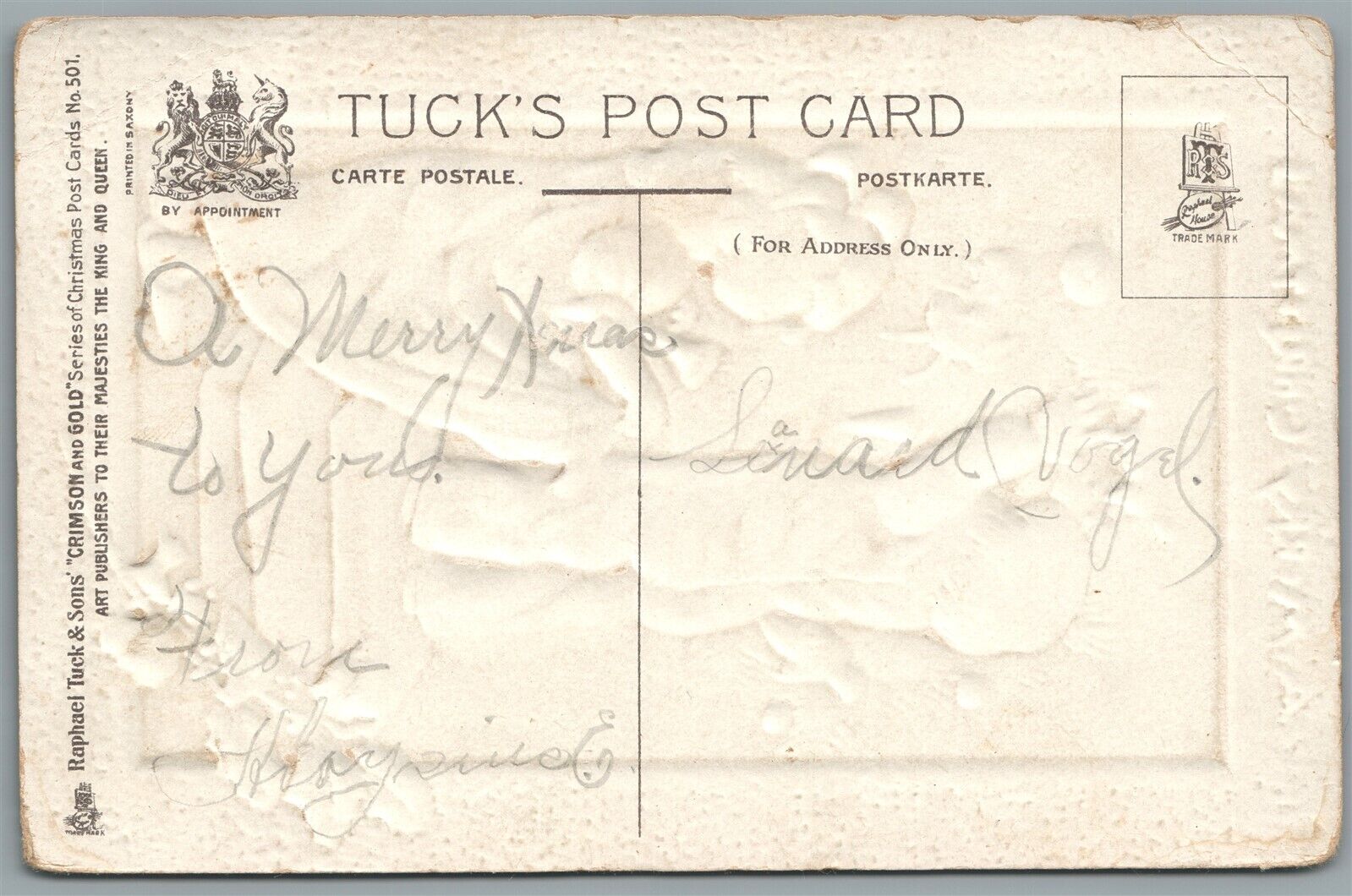 KIDS DECORATING CHRISTMAS TREE NEW YEAR EMBOSSED ANTIQUE POSTCARD