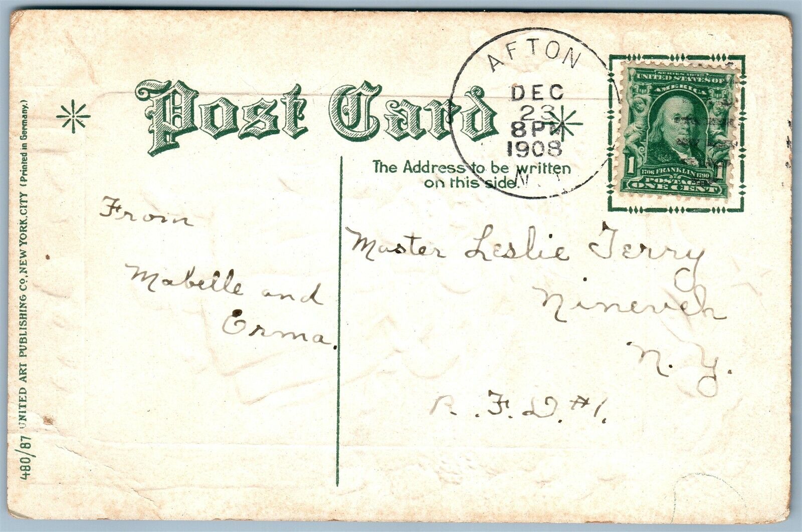 KIDS w/ CHRISTMAS TREE ANTIQUE HAPPY NEW YEAR POSTCARD