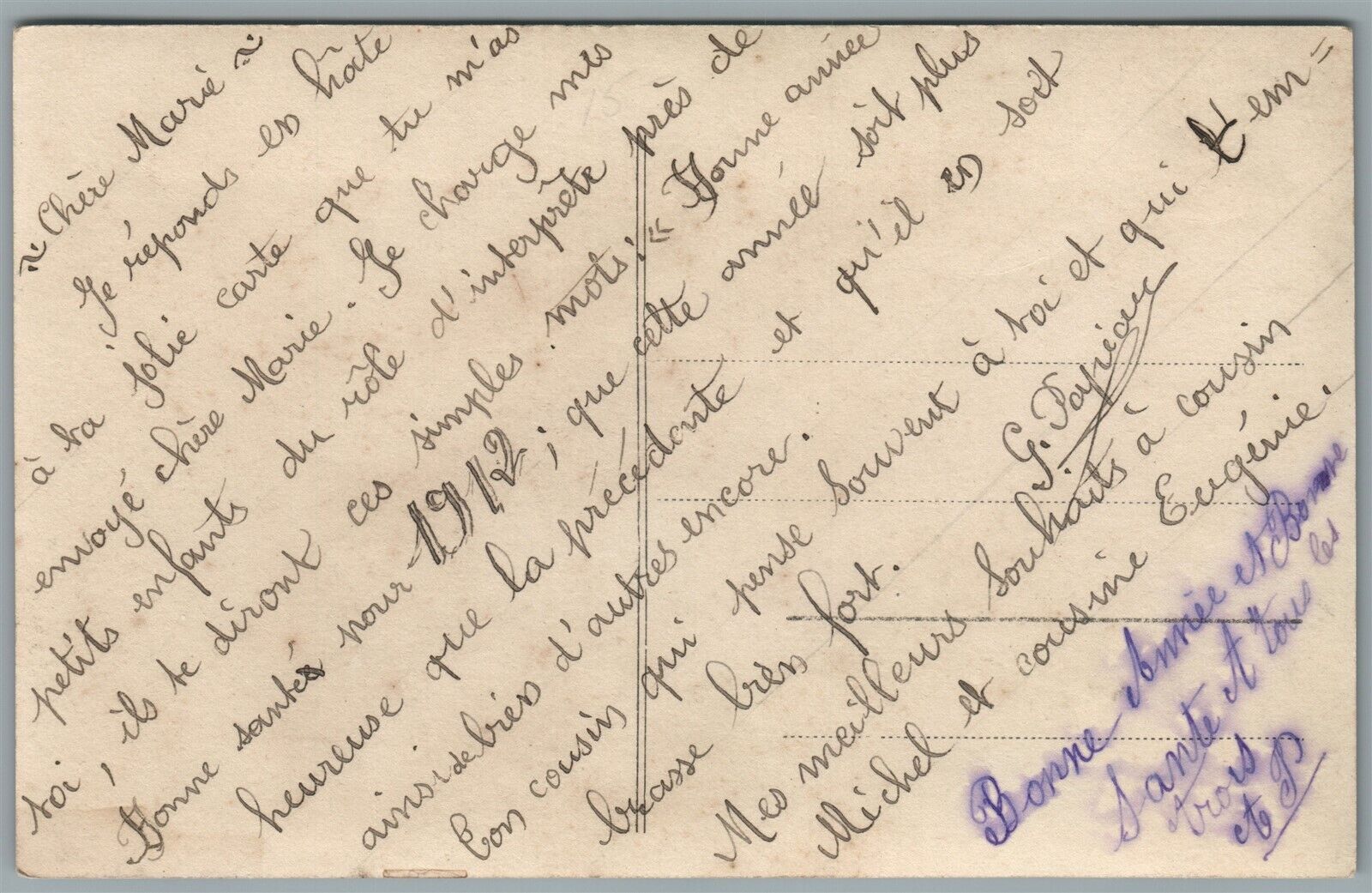 KIDS w/ DOG & FLOWERS FRENCH ANTIQUE REAL PHOTO POSTCARD RPPC