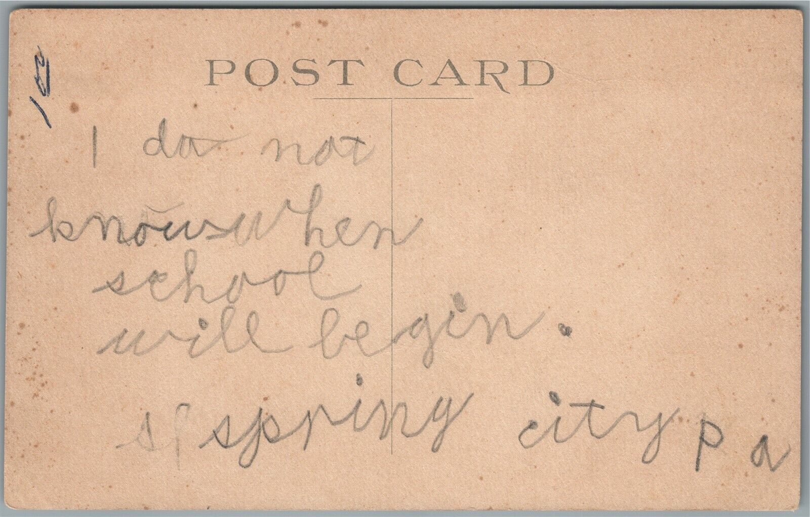 KIDS w/ TOY DOLL TIME TO RE-TIRE (BUY FISK) ANTIQUE POSTCARD