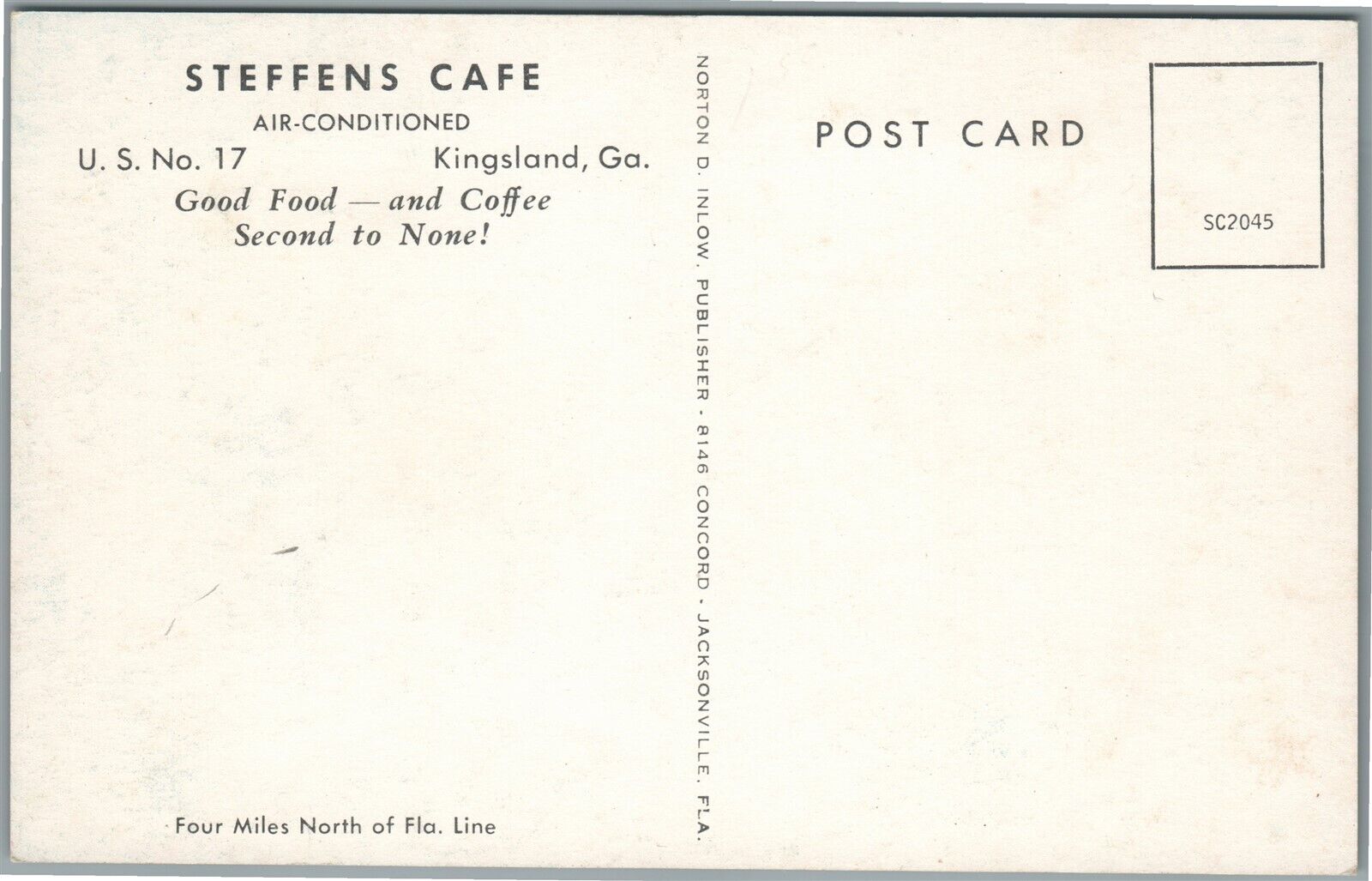 KINGSLAND GA GAS STATION STEFFENS CAFE VINTAGE POSTCARD