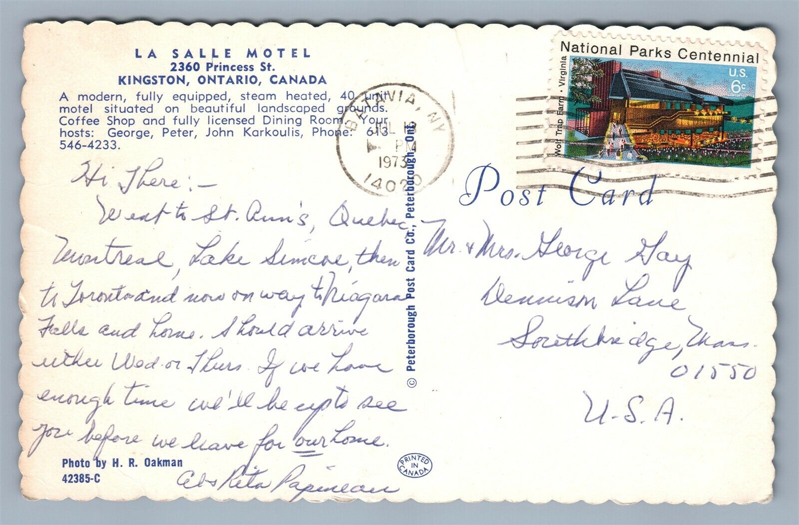 KINGSTON ONT CANADA LA SALLE MOTEL VINTAGE POSTCARD