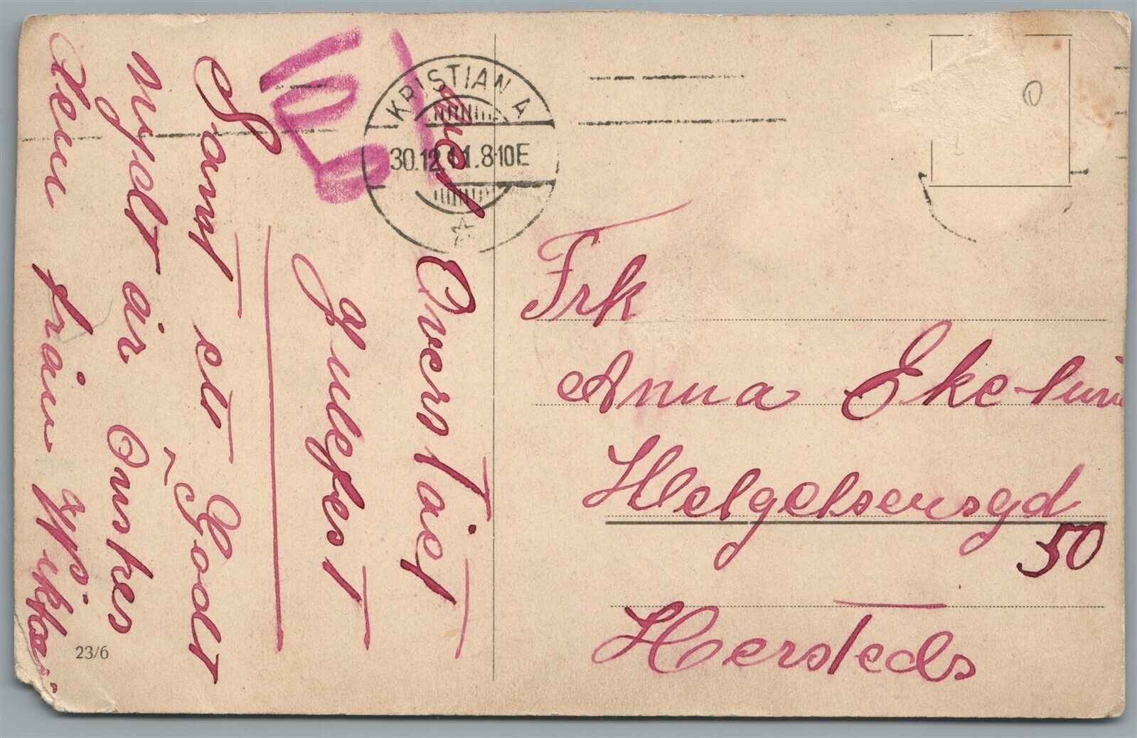 LADY w/ CHRISTMAS GIFTS ANTIQUE POSTCARD