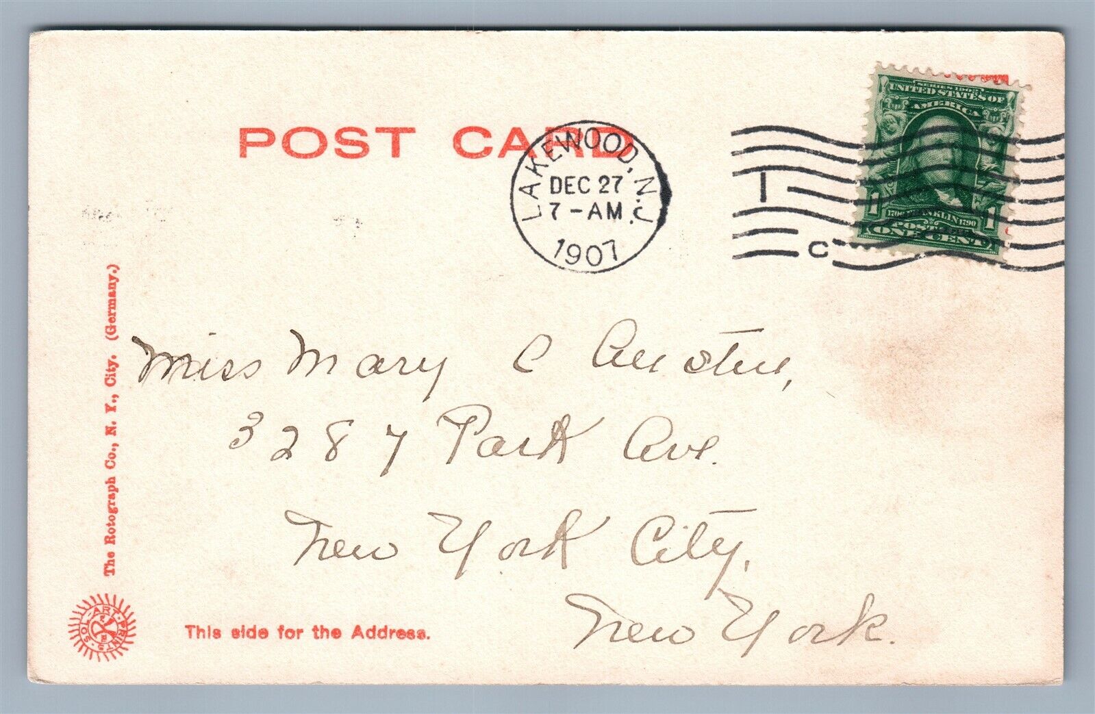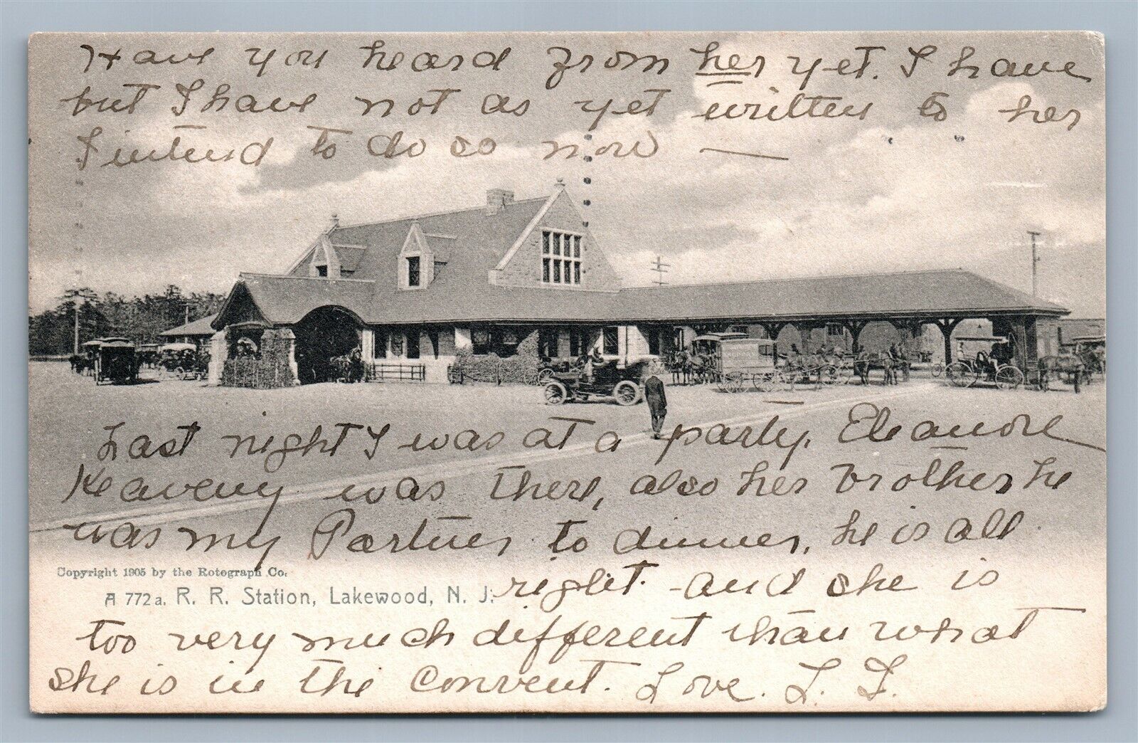 LAKEWOOD NJ RAILROAD DEPOT 1907 ANTIQUE POSTCARD railway station