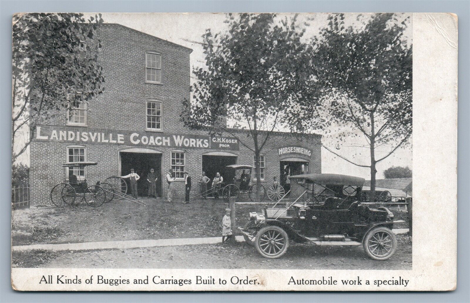 LANDISVILLE PA COACH WORKS ANTIQUE POSTCARD AUTOMOBILE BUGGIES CARRIAGES BUILT