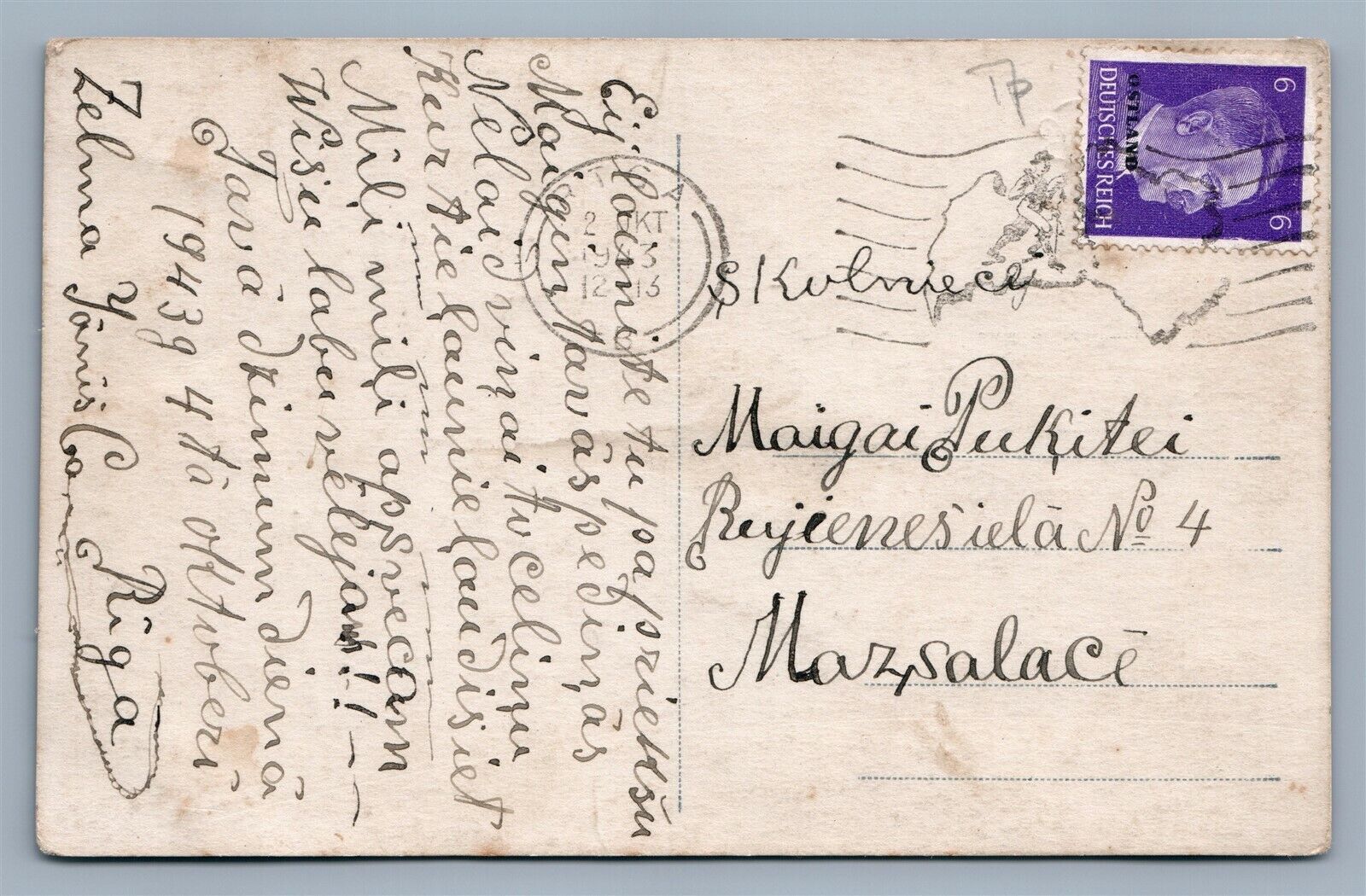 LATVIAN 1943 ATHLETIC EXERCISES VINTAGE REAL PHOTO POSTCARD RPPC w/ GERMAN STAMP