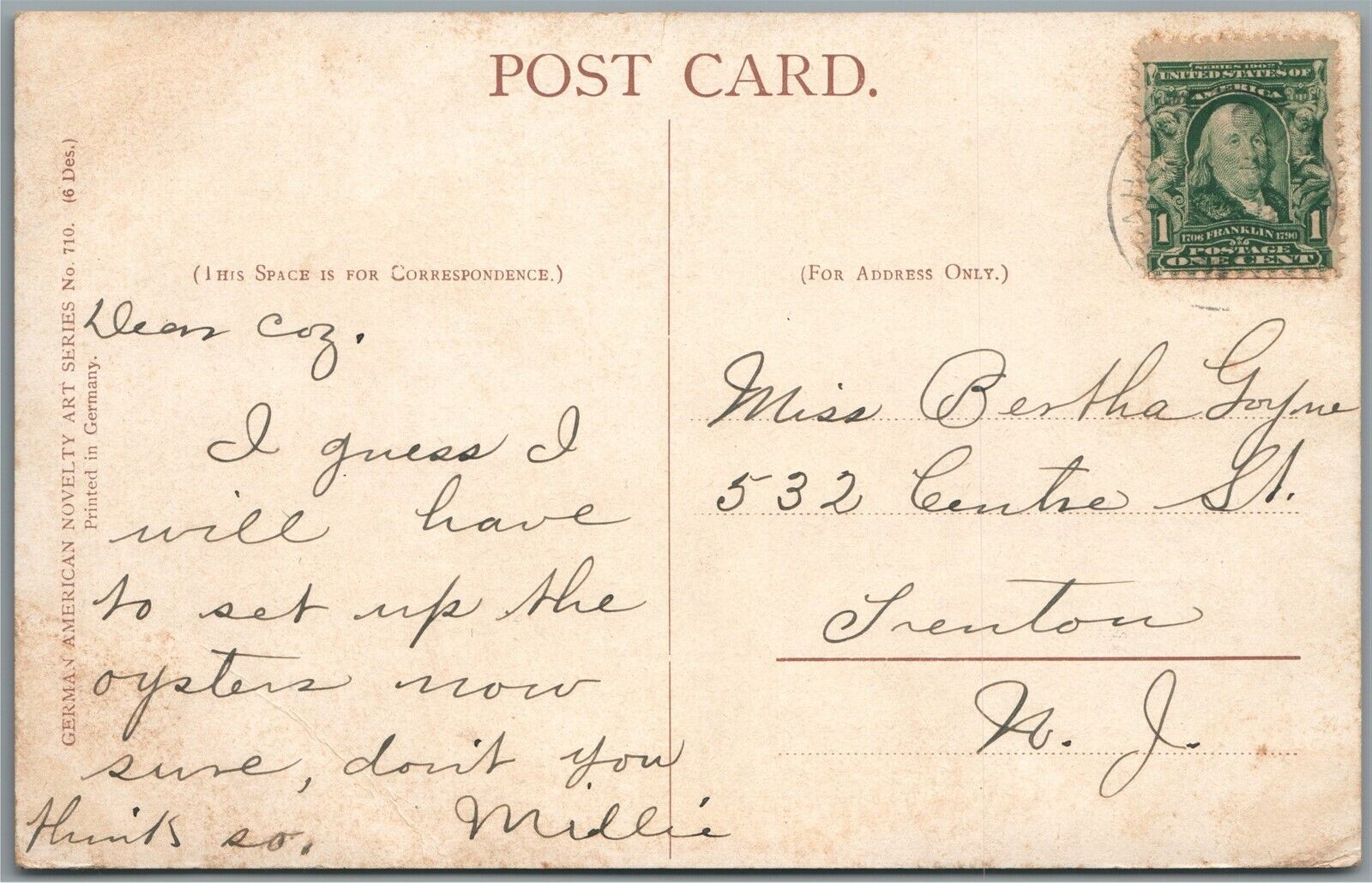LAUGHING CAT ARTIST SIGNED A. THIELE ANTIQUE POSTCARD