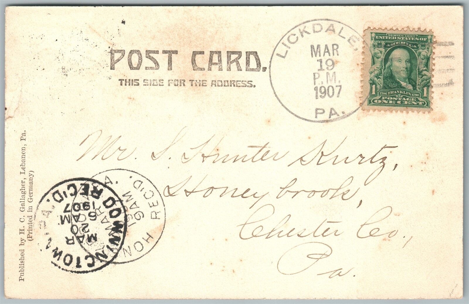 LEBANON PA RAILROAD DEPOT UNDIVIDED 1907 ANTIQUE POSTCARD railway train station
