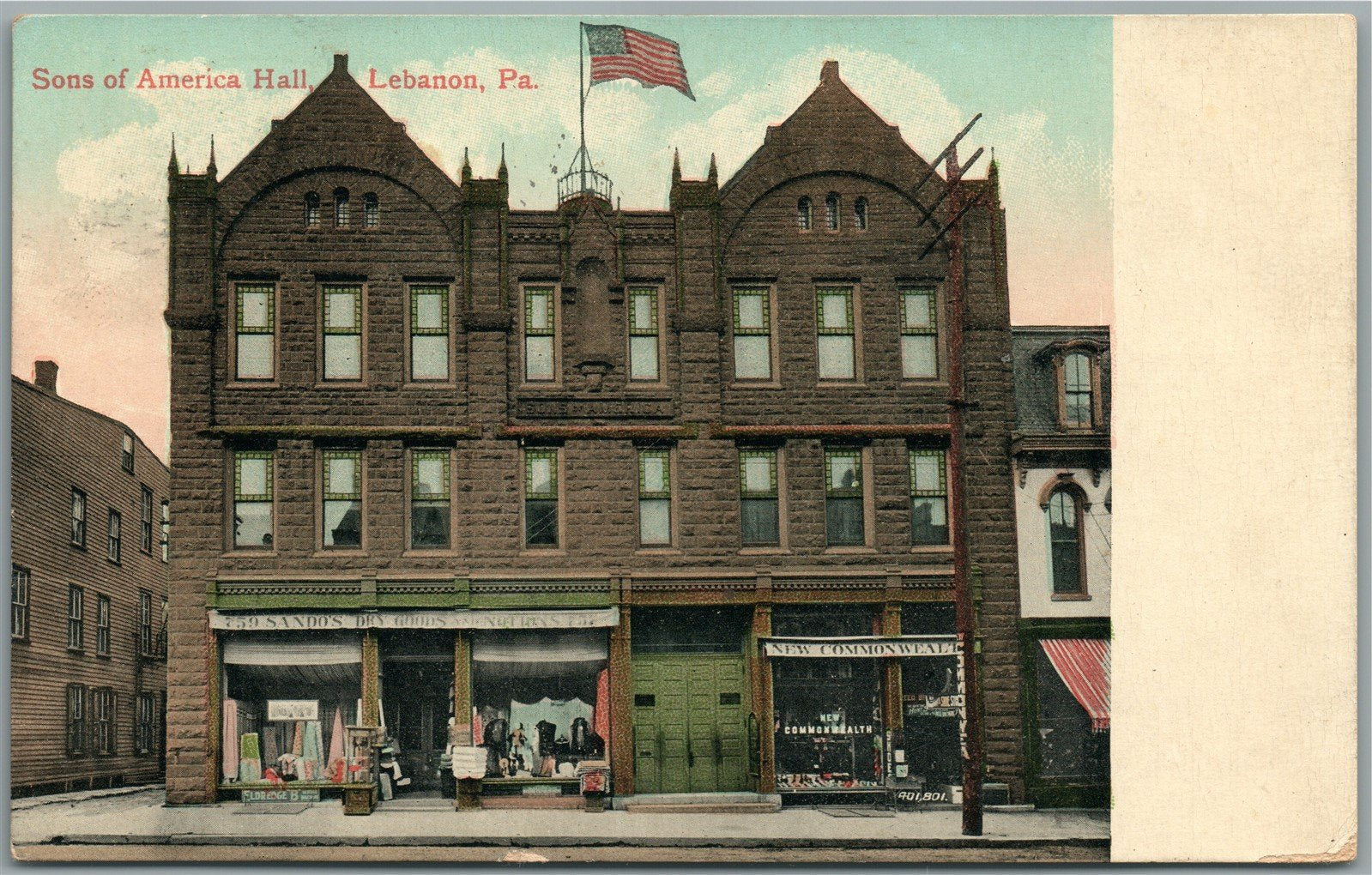 LEBANON PA SONS OF AMERICA HALL ANTIQUE POSTCARD