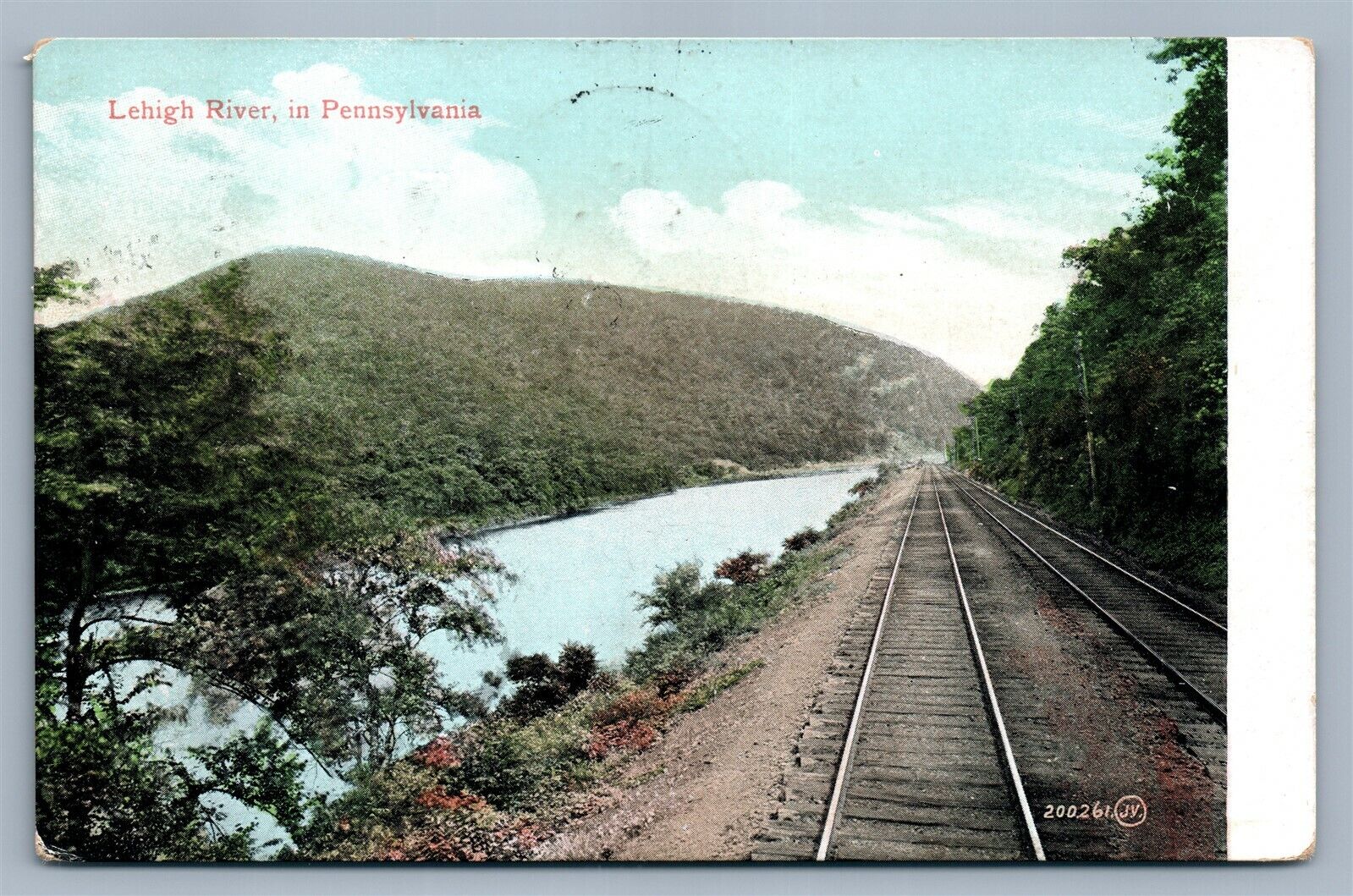 LEHIGH RIVER PA REILROAD TRACKS 1907 ANTIQUE POSTCARD