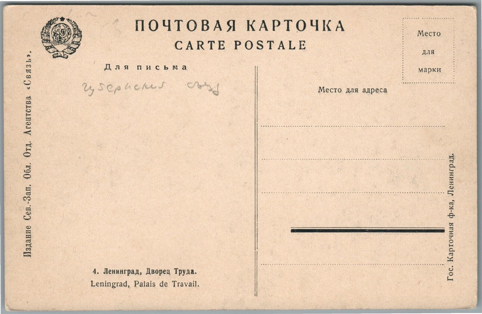 LENINGRAD RUSSIA PALACE OF LABOR ANTIQUE POSTCARD