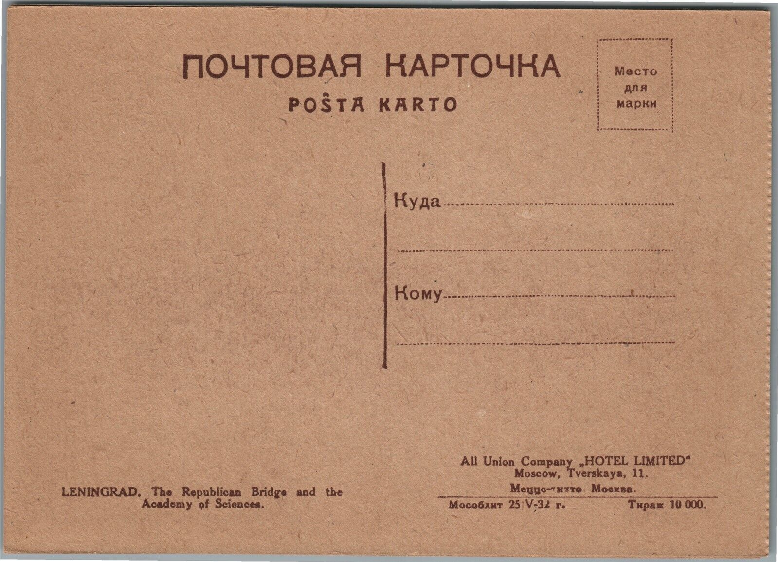 LENINGRAD RUSSIA REPUBLICAN BRIDGE & ACADEMY OF SCIENCES ANTIQUE POSTCARD