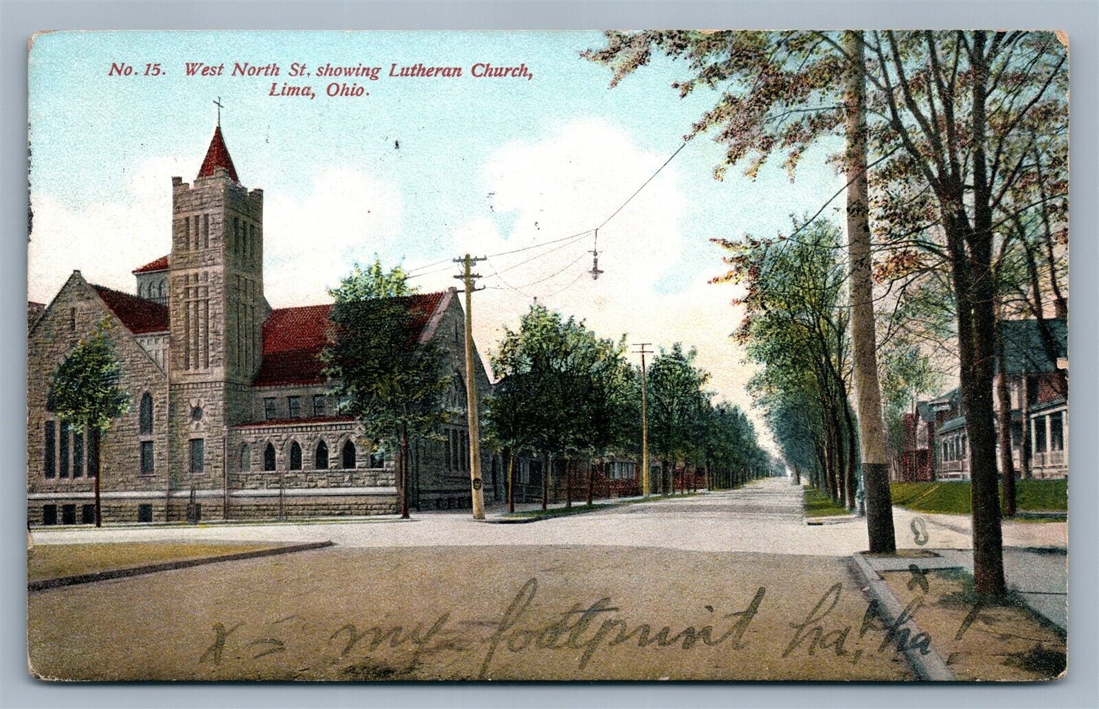 LIMA OH WEST NORTH STREET LUTHERAN CHURCH 1908 ANTIQUE POSTCARD