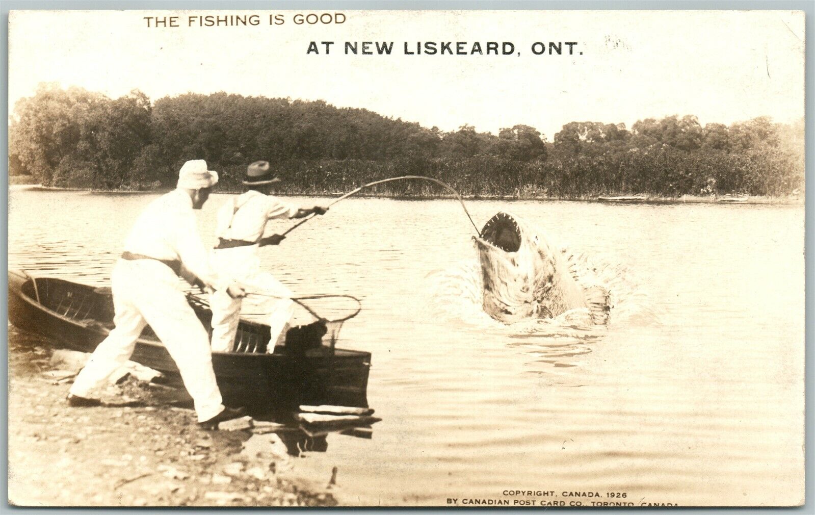 LISKEARD ONT. CANADA FISHING EXAGGERATED ANTIQUE REAL PHOTO POSTCARD RPPC
