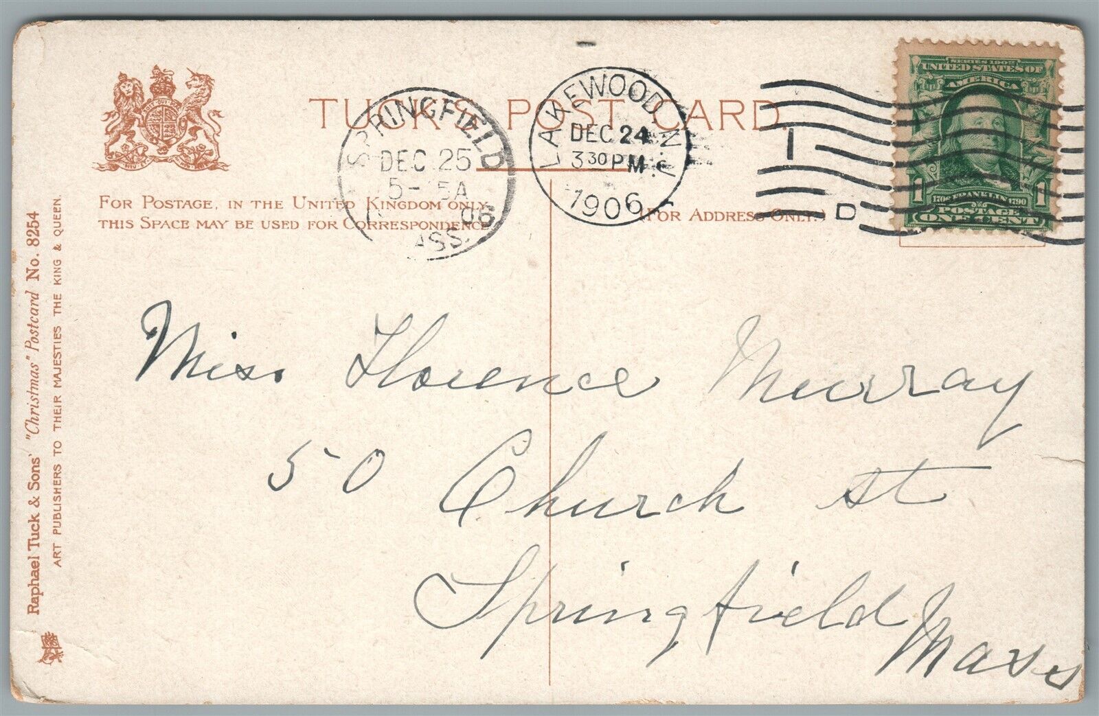 LITTLE GIRL w/ CHRISTMAS TREE 1906 ANTIQUE POSTCARD