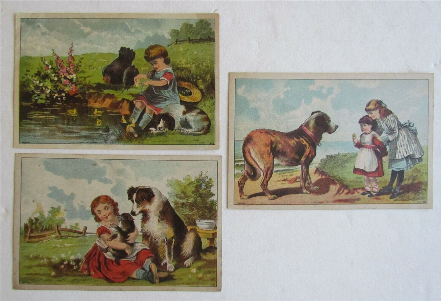 LITTLE GIRLS w/ DOGS SET OF 3 ANTIQUE VICTORIAN TRADE CARDS