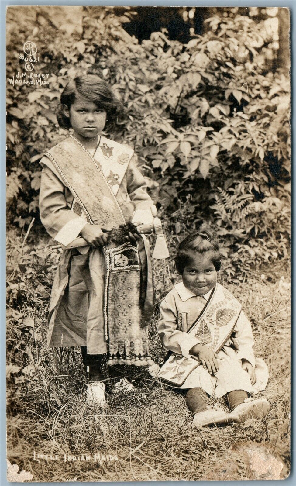 LITTLE INDIAN MAIDS ANTIQUE REAL PHOTO POSTCARD RPPC by J.M.COLBY WAUSAU WI