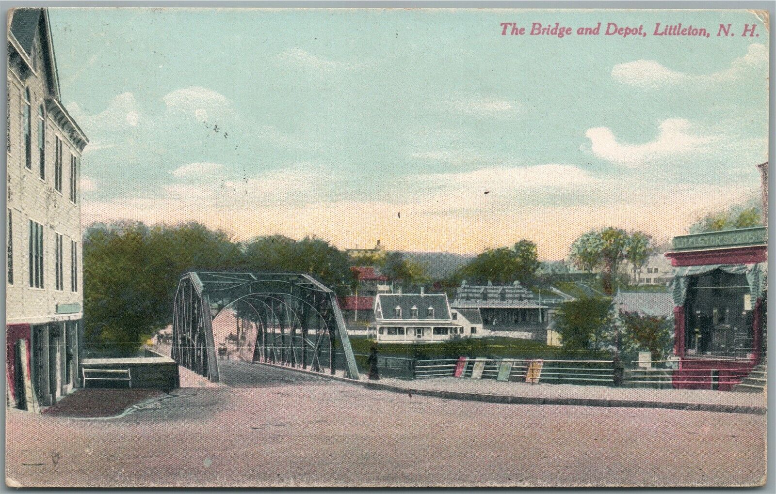LITTLETON NH BRIDGE & RAILROAD STATION RAILWAY DEPOT ANTIQUE POSTCARD
