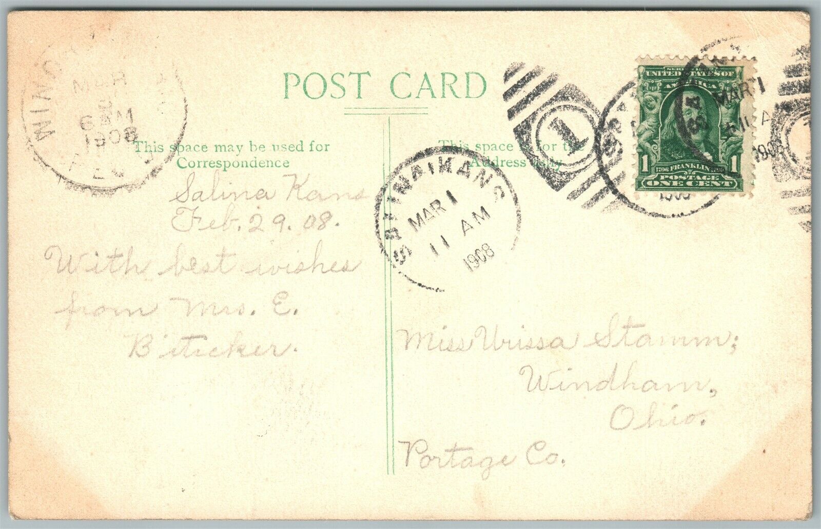 LOAD OF KANSAS CORN EXAGGERATED 1908 ANTIQUE POSTCARD w/ CORK CANCEL