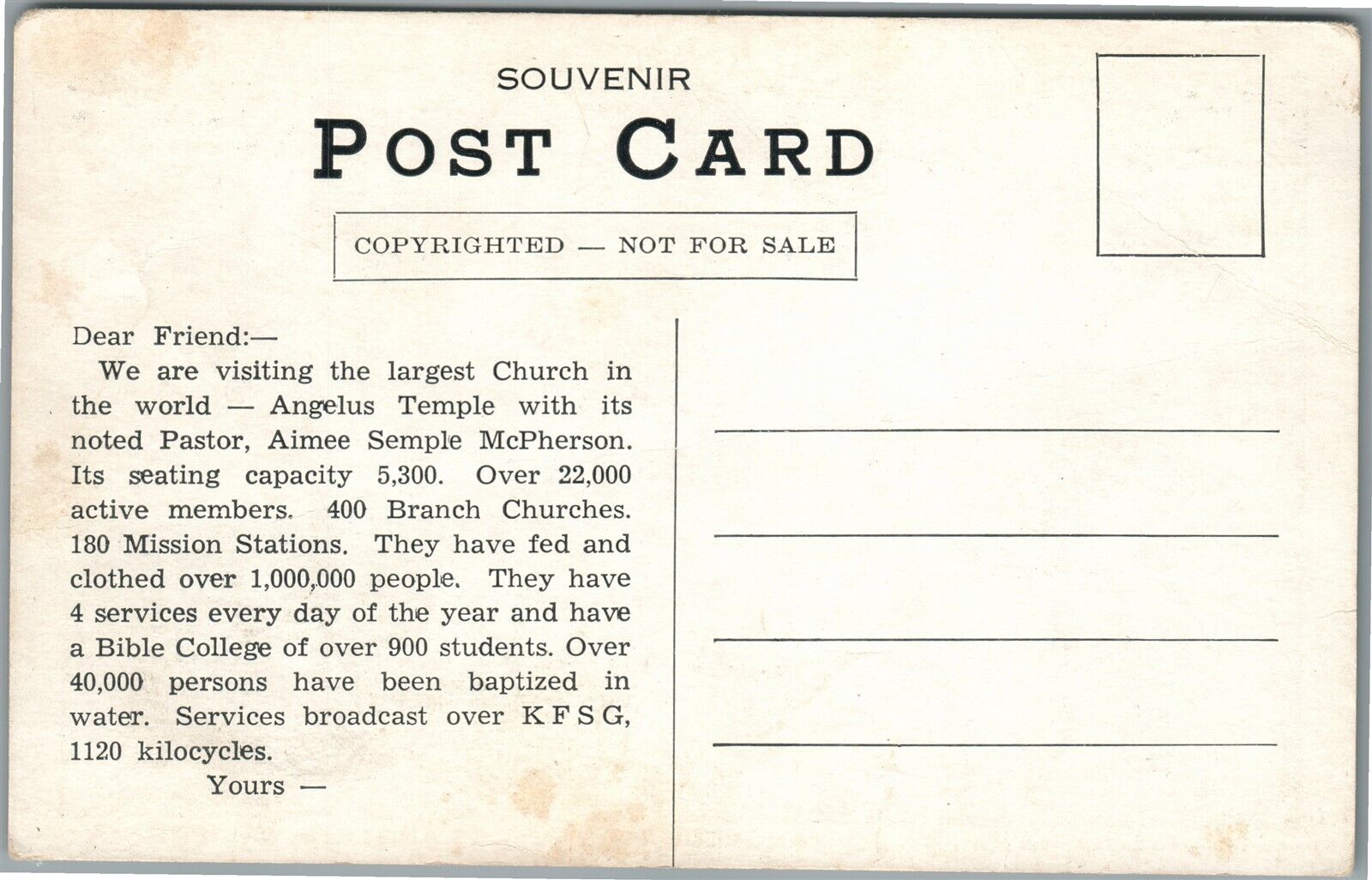 LOS ANGELES CA ANGELUS TEMPLE ANTIQUE POSTCARD