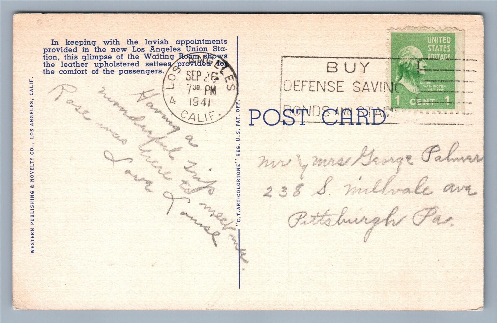 LOS ANGELES RAILROAD DEPOT WAITING ROOM VINTAGE POSTCARD RAILWAY TRAIN STATION