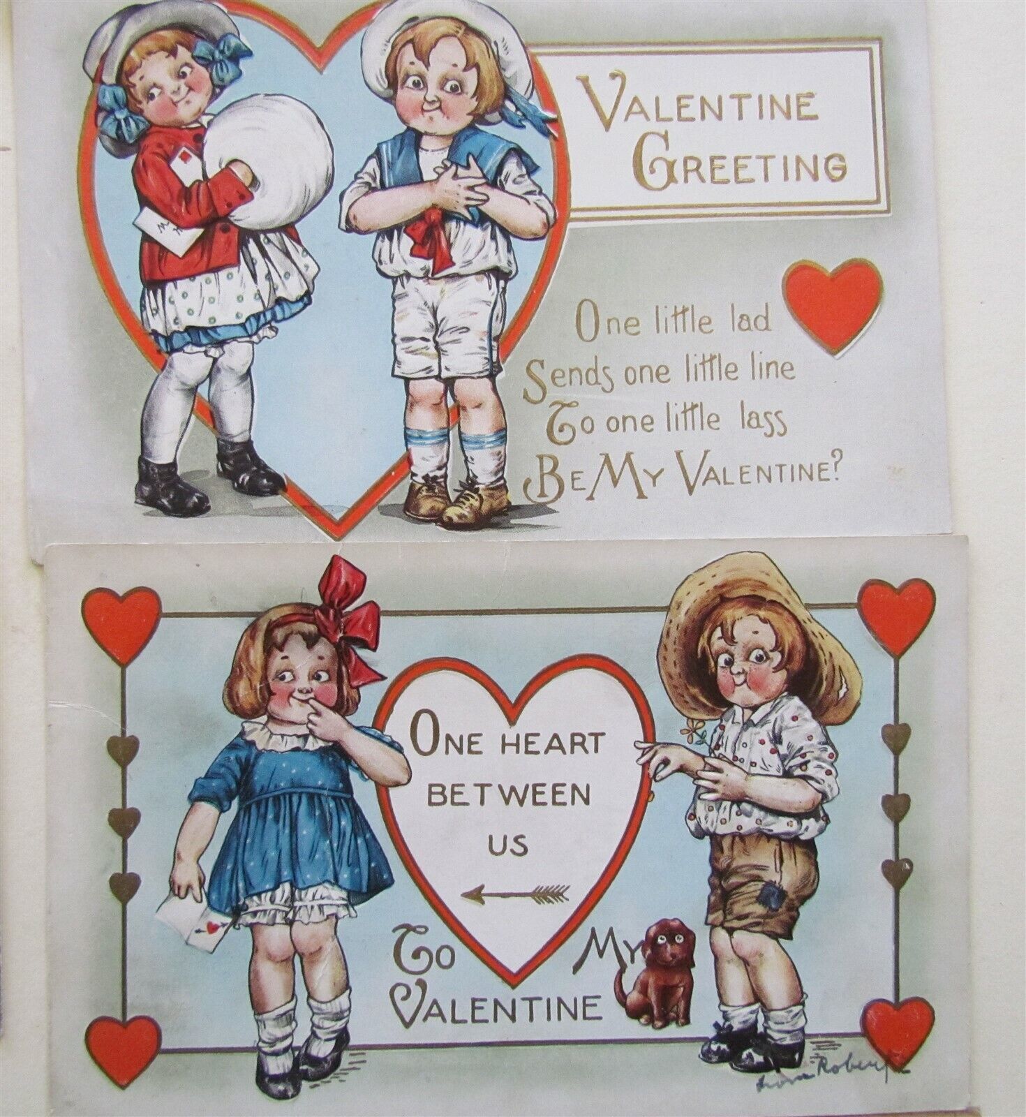 LOT of 11 VALENTINE ANTIQUE POSTCARDS w/ ROMANTIC KIDS