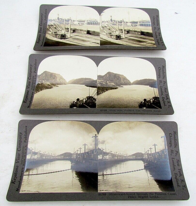 LOT OF 3 ANTIQUE STEREOVIEWS - PANAMA CANAL PHOTOS
