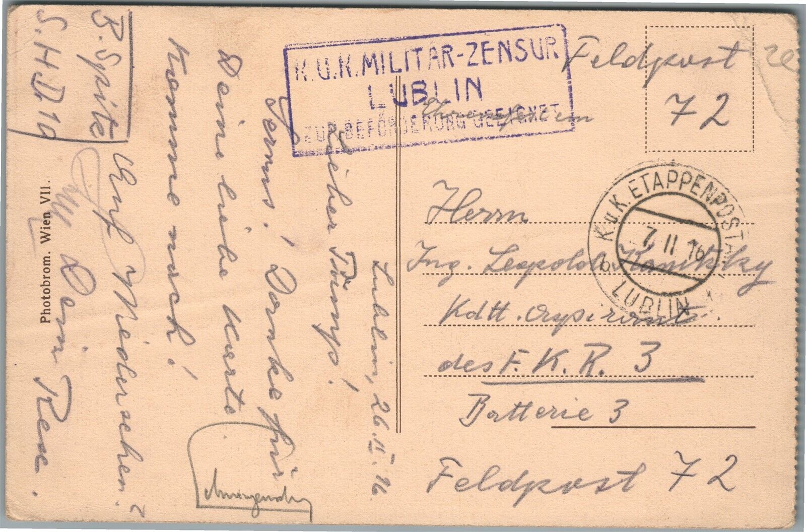 LUBLIN POLAND BRAMA KRAKOWSKA ANTIQUE POSTCARD 1916 WWI AUSTRIAN MILITARY CENSOR