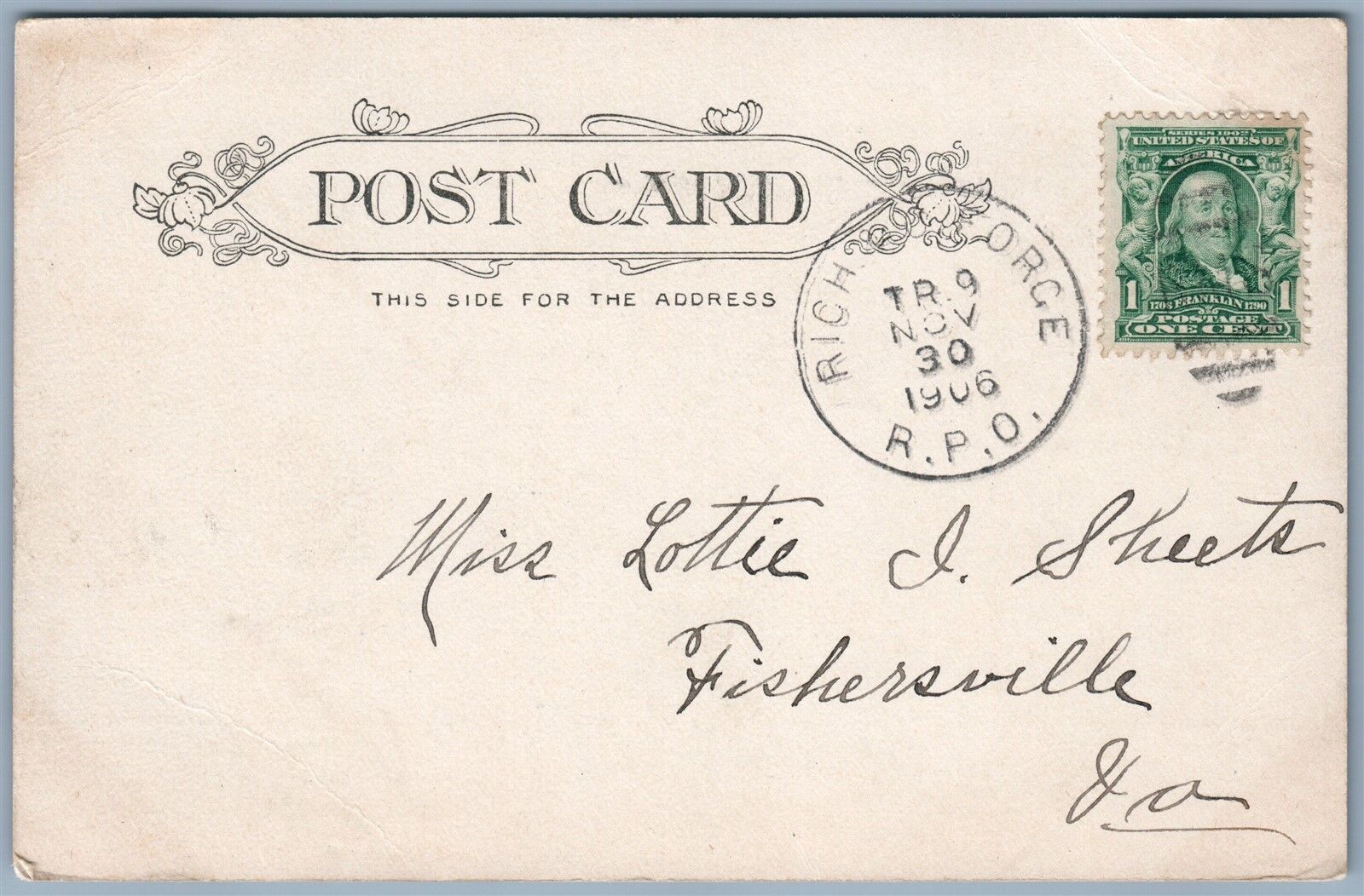 LYNCHBURG VA JAMES RIVER ANTIQUE 1906 UNDIVIDED POSTCARD w/ CORK CANCEL