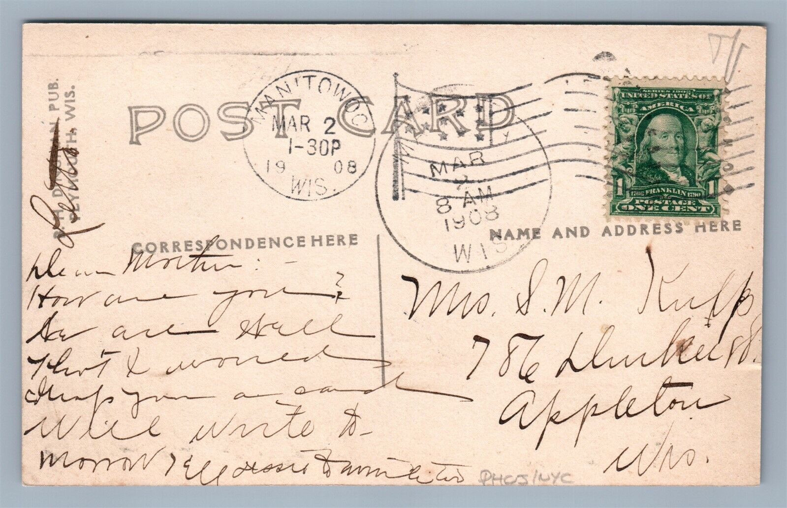 MANAWA WI HIGH SCHOOL 1908 ANTIQUE REAL PHOTO POSTCARD RPPC
